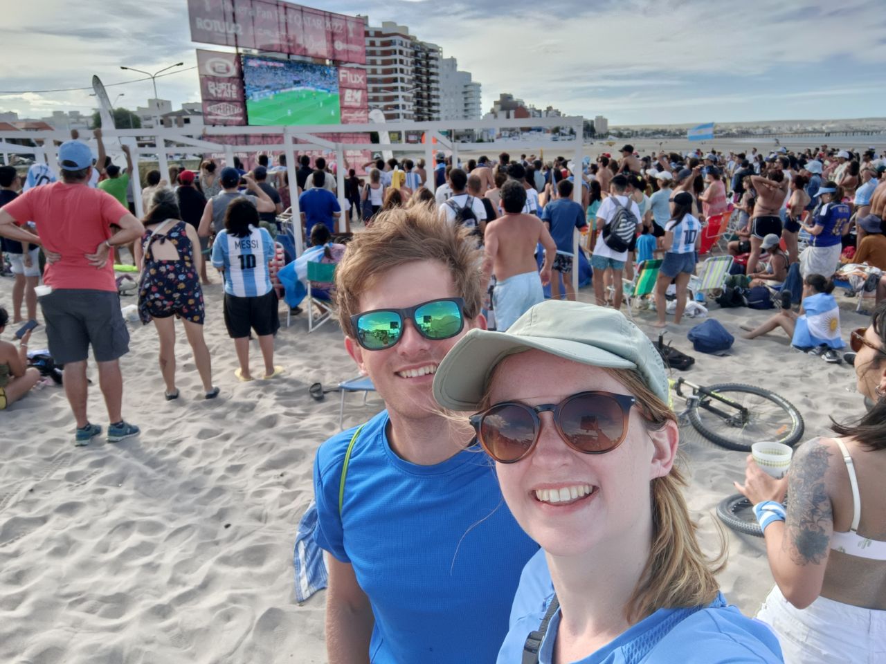 Puerto Madryn! A small city in a bay, next to a peninsula where we spotted some wildlife! But not after watching the match between Argentina and Croatia, we found a spot on the beach where we enjoyed all those happy people. And what an insane party afterwards, it was like they already won the world cup! Parties on the streets for hours, fireworks and honking cars while waving their flags! Two days later it was our time to explore de Península de Valdés! Saw amazing wildlife: lots of guanacos (kind of like a lama), sea lions, sea elephants, pinguïns, an amarillo and some smaller animals! The day after, we were not done yet seeing animals and biked to a spot to see some more sea lions. At the 17th we left the city for a long bus ride (not a airplane!) to our next stop! Our mood songs says it all: "I'm on a road to nowhere"
