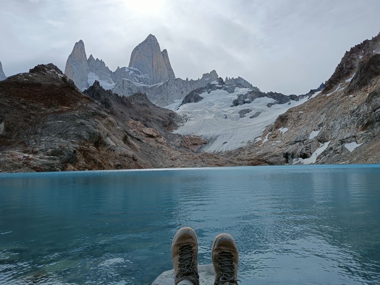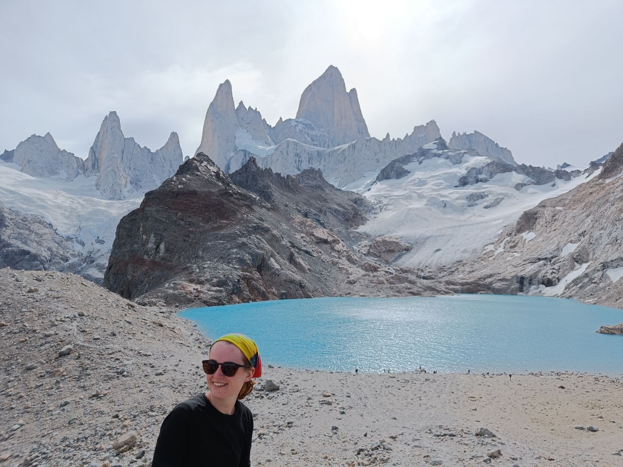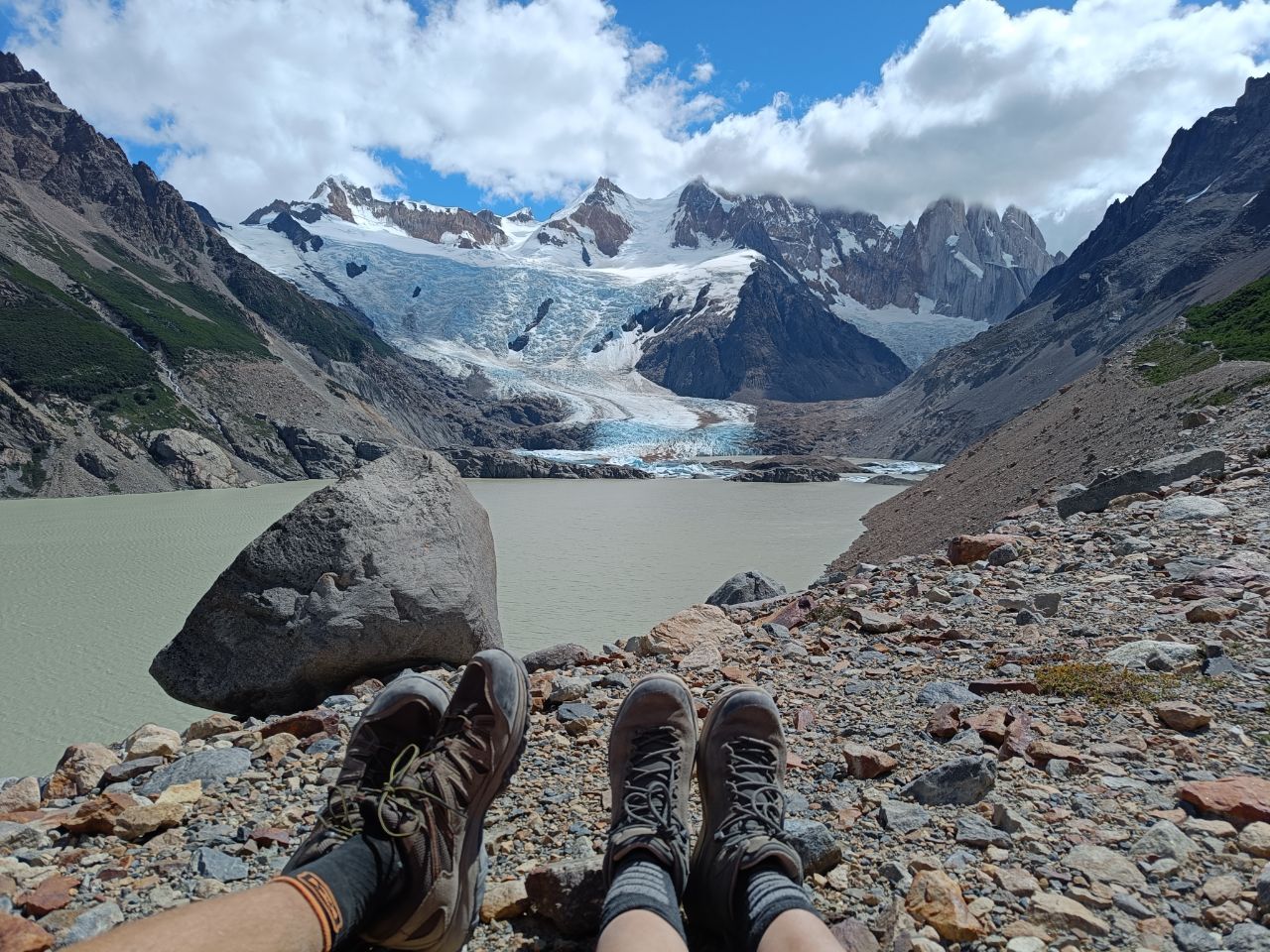 To the Fitz Roy mirador it was another hour climbing🧗. We were in doubt wether we also wanted to spent next mornings' famous sunrise up there. 🌄However, on day #3 we were so happy we decided against it! Although we woke up at six, we were not the ones climbing the mountains in the dark at 3ish. The mountain is especially famous because of the red colour it used to get from the early sunlight. However, one thing was missing: sun 🌞🌥️. Even more on that, some rain clouds🌧️ were finding their way towards our valley together with really strong winds🌀. Well we took advantage of the wind, quickly packed our tent and in two hours we were back in El Chaltén! 🏘️Oh we didn't envy the people who climbed their way up: good luck with that...