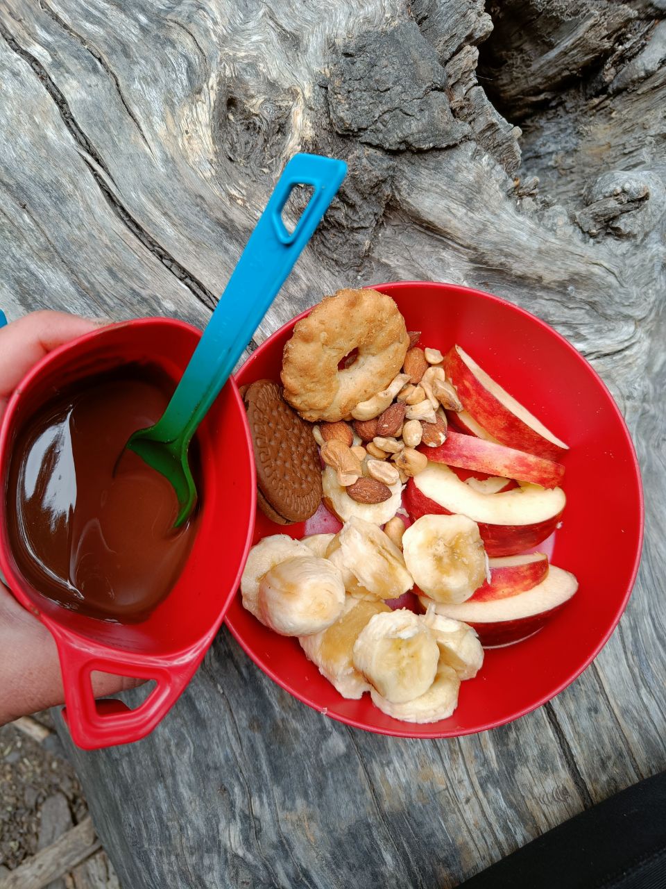Day #2 after enjoying our breakfast at the Mirador with perfect views we had another 'long' hike of 3 hours to go to the one and only Fitz Roy, the biggest mountain in the park. To skip some crowds we decided to go late in the afternoon, which means we had time for chocolate fondue! 🤤🫕(Yesterday a Swiss-guy laughed at us for bringing a can🥫 up in the mountains (he considered it too heavy💪), well he must be jealous with what luxury we have left in our pockets :)