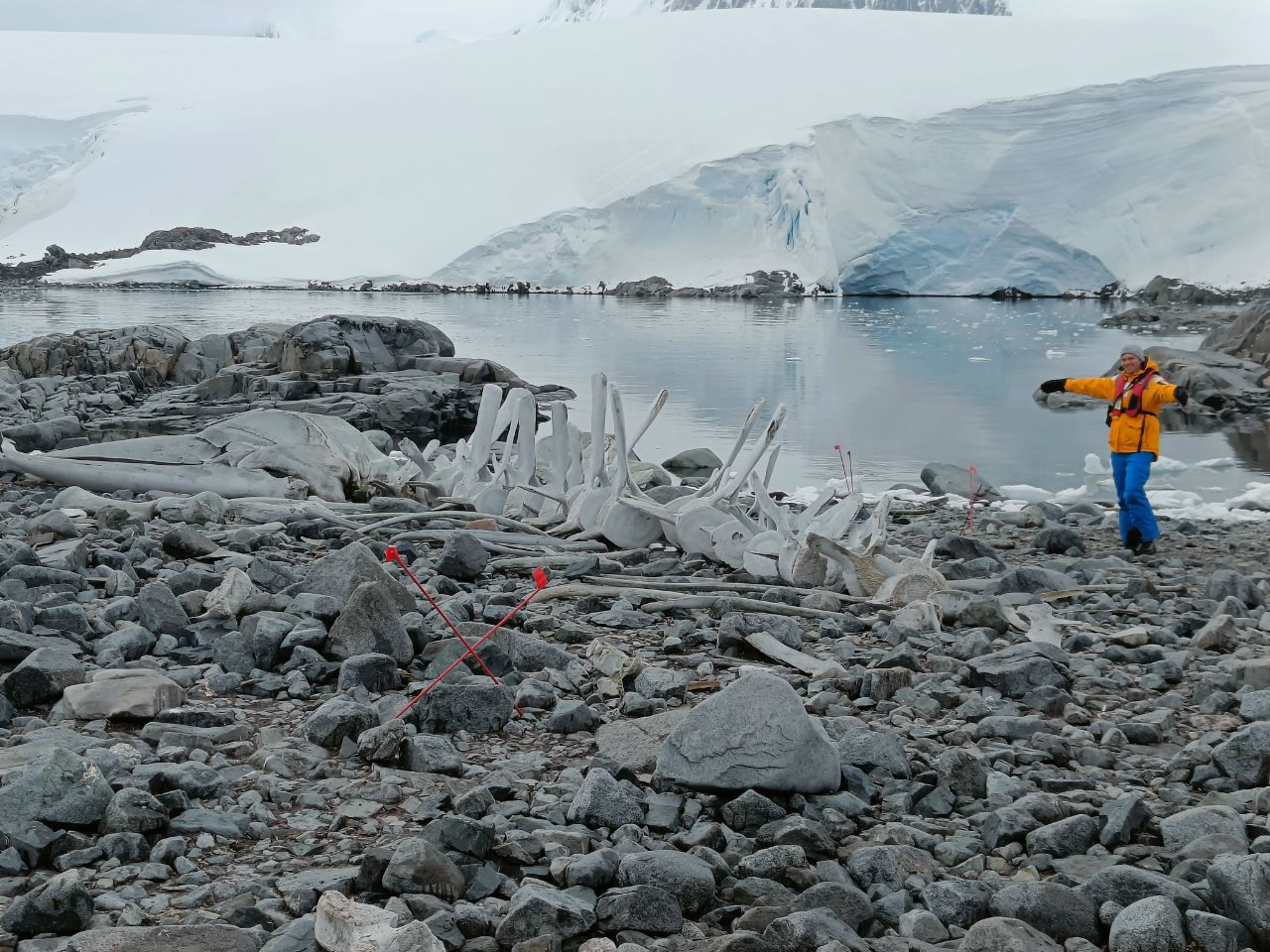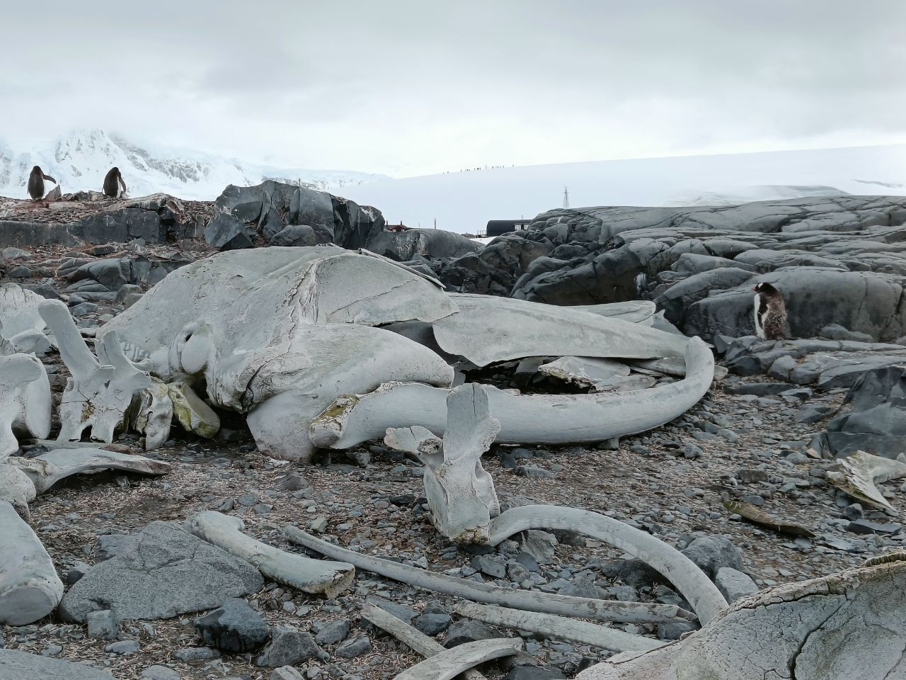 The day started, however, with a Zodiac cruise towards Jougla Point, where we saw (what else) heaps of Penguins and a really cool skeleton of a whale! Only when you see the skeleton, you realise how big whales actually are! After Jougla Point we landed at the base of Port Lockroy. It is still manned (or womanned?) by four young women from the UK. They live in a modernist building in the back of the base, while the official building is converted into an interesting small museum. It displays the way the base looked during the times of the British research Station / whaling-period. Back then it was more of a mancave, the wall paintings of barely clothed women still remembers of this time. Honestly, it didn't look to bad at all. We wouldn't mind having stayed there for a few months! ☺️