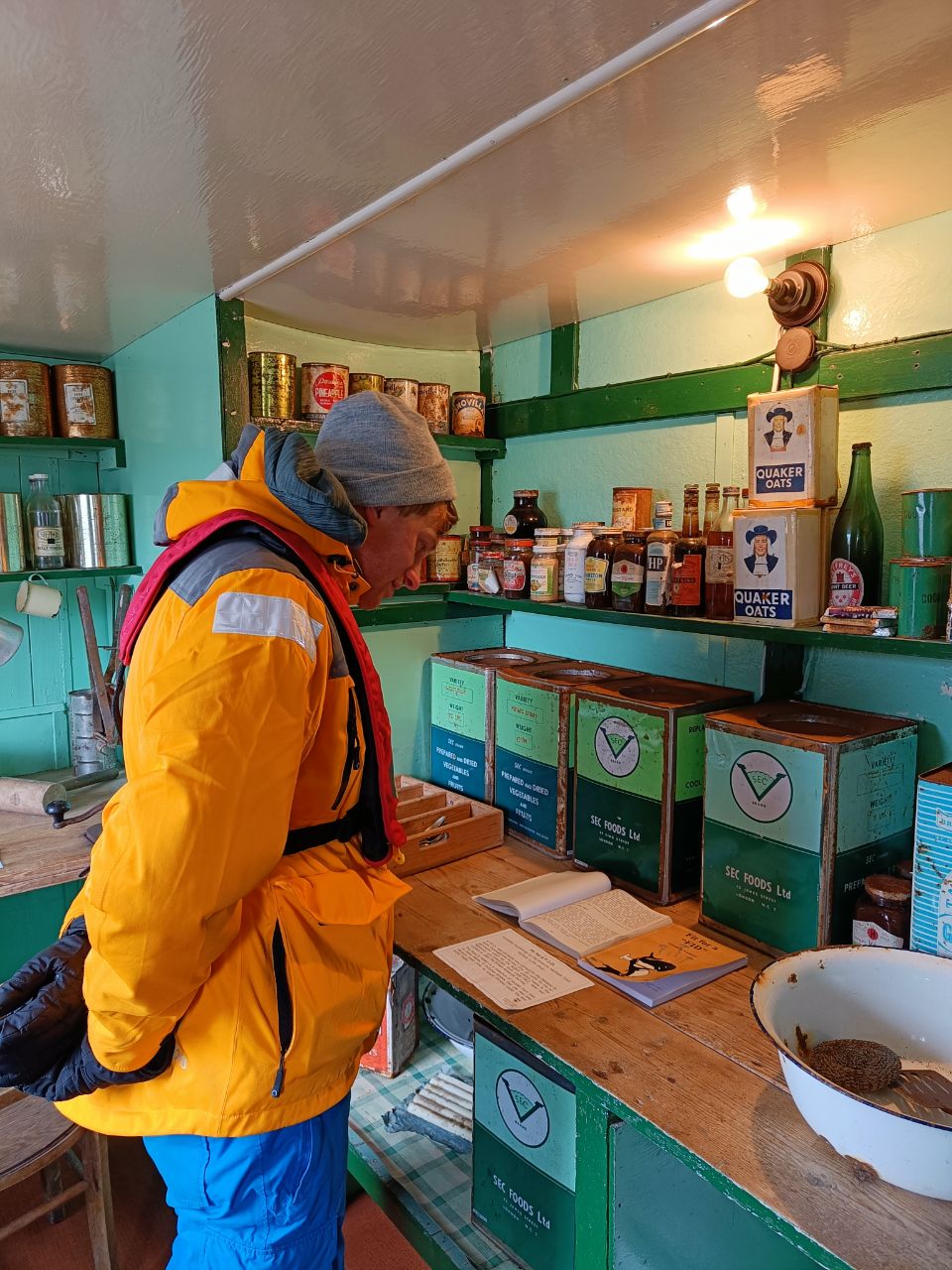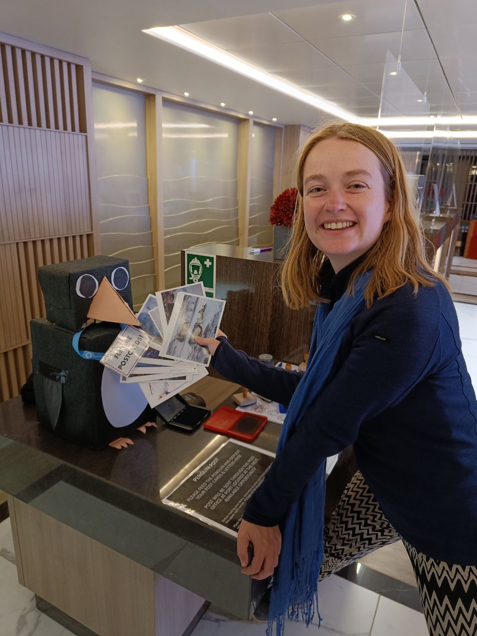 This morning we were not the first ones up for a change. We encountered two of the expedition crew, (early birder) Jean and Greg, in the observatory. They were busy putting stamps on all of the postcards that we handed in the night before. They thought that we wouldn't be allowed to land all together at Port Lockroy due to covid, and that they had to post the postcards for us📬. Unexpectedly, we also were allowed to visit port Lockroy! 🥳 This also enabled us to find our first (and only) geocache on Antarctica, how cool is that!