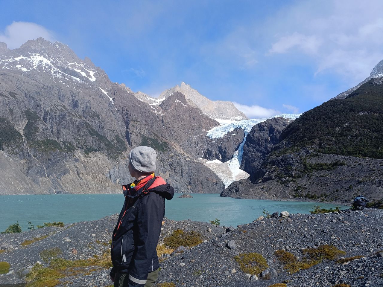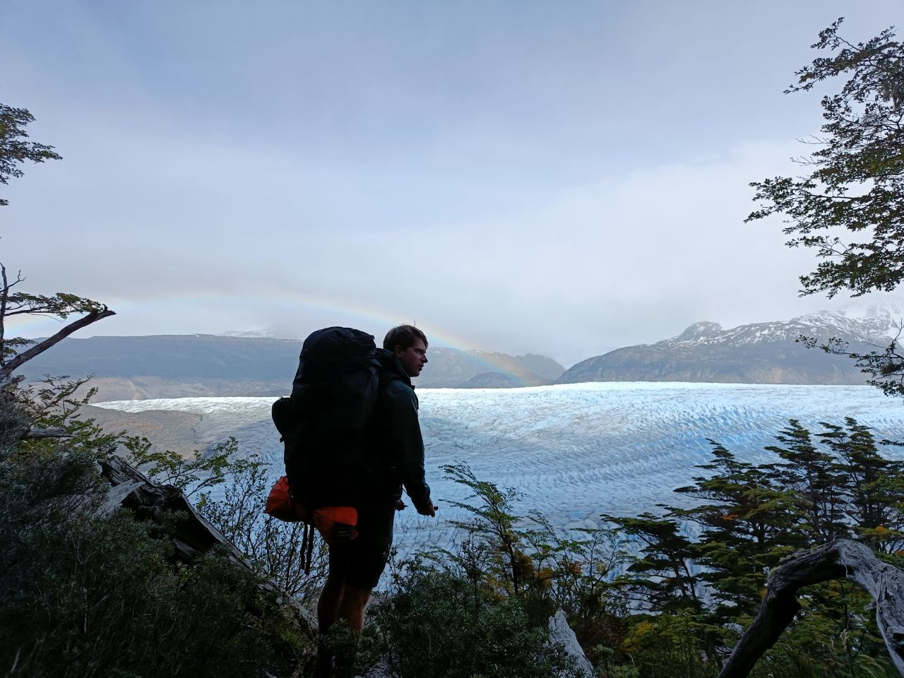 We are enjoying the "back-side" of the mountains, the area which is only for The O-track People. After the hardest day of crossing John Gardner pass, we got some stunning views over the glacier and the great southern icefield, the same one as we saw on the Huemul-track back in El Chaltén! These were also the last quiet moments before joining the W-parcours. Although all camp areas are better than we expected (or hoped for), from here on it's not survival at all. All campspots come with hot showers, restaurants, paid wifi and lots of people. We feel overwhelmed and not prepared to be back in this kind of society. However, let's make the best of it. We get why this area attracts so many others, it's beautiful! And the variety is incredible: glaciers, blue lakes, mountains of all kind of shapes and nature in itself. Oh and seasons, the saying goes that you can experience all seasons in one day. And oh we did, rain, snow, wind and even sunshine, we got it all! However, we praised ourselves to be lucky, the weather gods were mostly in favour. As for this, our best -no clouds allowed in the sky- day was the hike to viewpoint Brittanico. On this day we saw even glaciers calving in the warmth and our hearts were warmed up by seeing Claudia🇨🇭 on the trail 🙂. The good weather lasted until the final day. Only the Torres were waiting for us... In the clouds. With hope and some naivety we hiked the last steps of the hike, up to the views point, however the Torres stayed hidden and forced Liselot to show some fotoshop skills :D