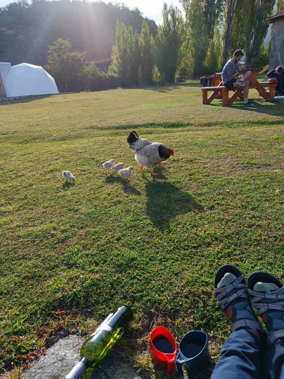We are on our way north again. The first signs of winter are being felt in Patagonia. The forests have started turning red, the snow is getting closer to the valley's and the wind has picked up a nasty chill. Reason for us to move Northwards at a somewhat quicker pace. Fall is beautiful, but the nights are getting cold for camping. However, after having been told by many friends that this was one of their famous places, we had to stop at Cerro Castillo to hike the namesake mountain. It was a steep climb of about 1200m up in a length of 6km. Liselot was suffering from an inflammation of her hip, so she unfortunately couldn't join. The hike was lovely however, starting in beautiful temperate forests, leading through grassy meadows all the way up rough bare rock, eventually reaching a mirador with views of a beautiful blue lake and the dramatic Cerro Castillo on the backdrop. It was spectacular. The morning after, we decided to hitchhike to Coyhaique, trying to speed up even more, as we woke up with ice on the outside of the tent! 🥶