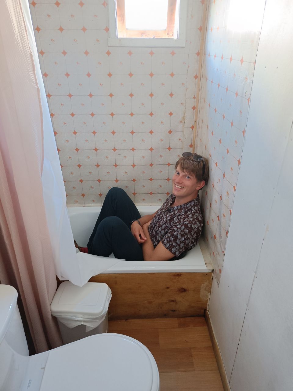 Just kidding! However, for two days we didn't do much. We enjoyed having a place with a fire stove, a bank to lounge on, a real bed, a 'bathtub' and our homemade Arretjescake! (Life can be so simple:) 🥳