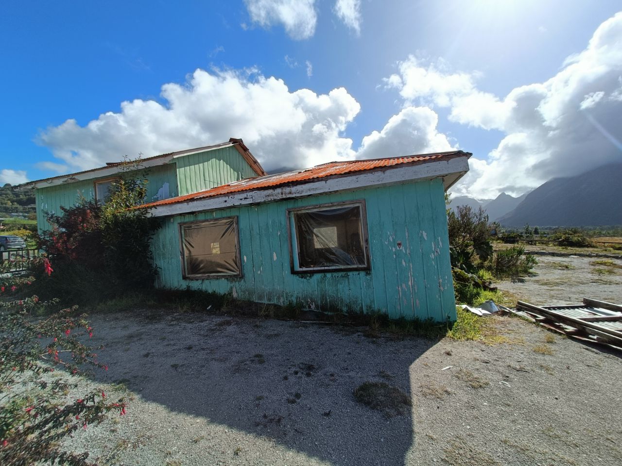 About the village; in 2008 Chaitén was surprised by a sudden eruption of the -as they thought- sleeping vulcano.🌋 Fortunately, no one was hurt, but several houses were destroyed and the river flow changed. Some relics are still visible in a small open-air museum. It was quite fascinating to step inside those houses, almost buried in ashes. Household relics like curtains or a fridge were still visible. The eruption also changed the riverbed, which now cuts Chaitén in two and deposited so much ashes that the beach now extends for an additional 200m! This all gave Chaitén a very confused layout.
