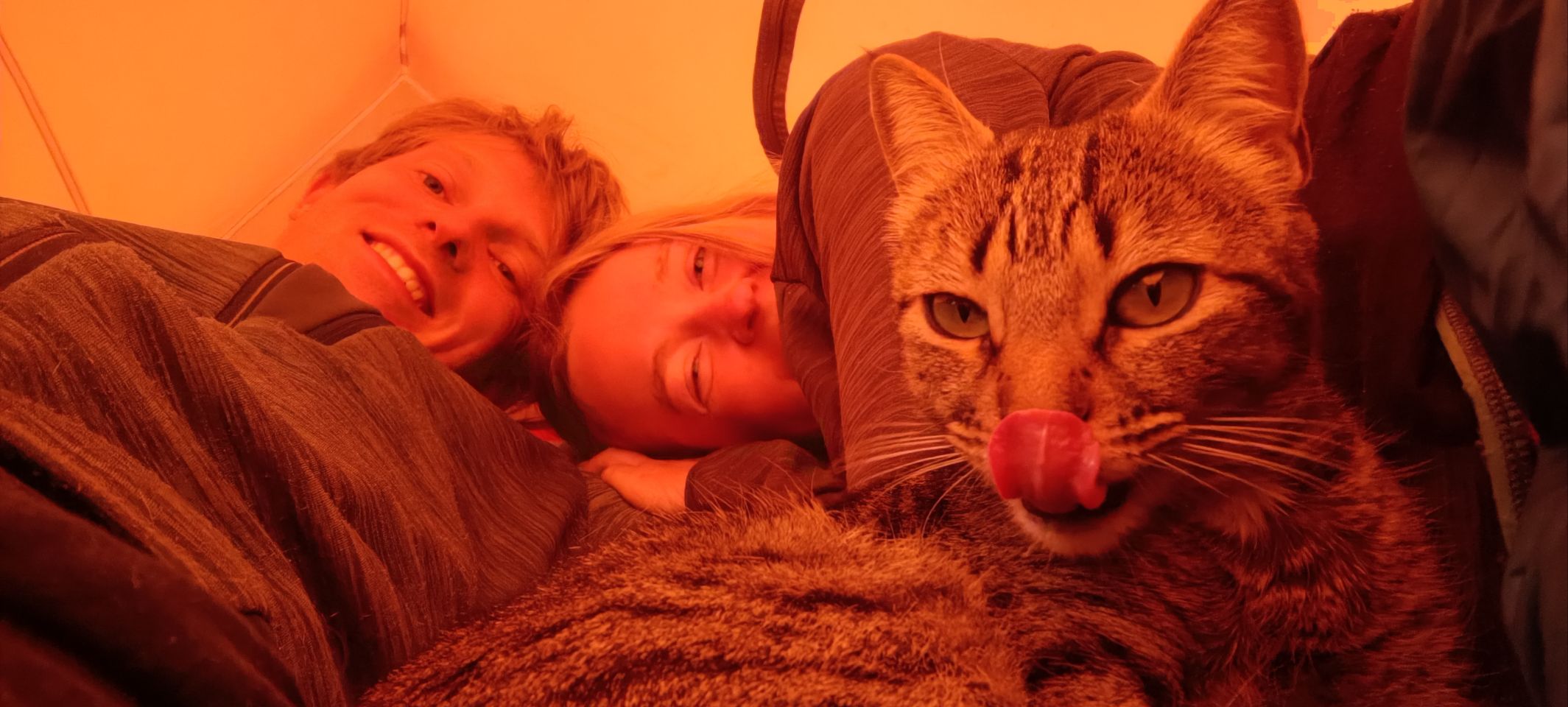 And only the best is yet to mention... We had three really sweet cats😻. In the morning the oldest cat tapped on our tent, just to crawl in for a little nap. The other two are little rebels. It turns out that not the Patagonian winds are the biggest enemy of our tent... Oh sorry parents, we also decided that we wait a little longer to have kids...