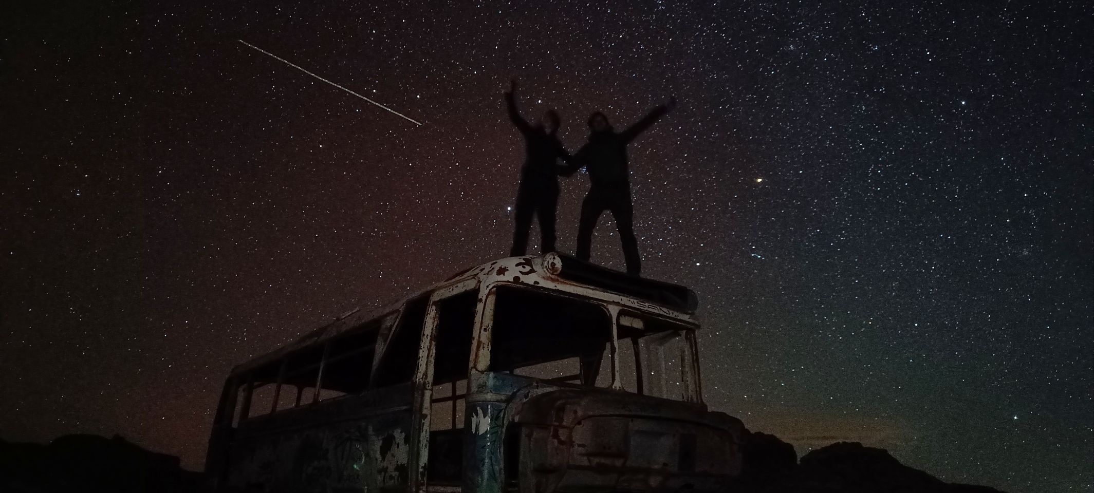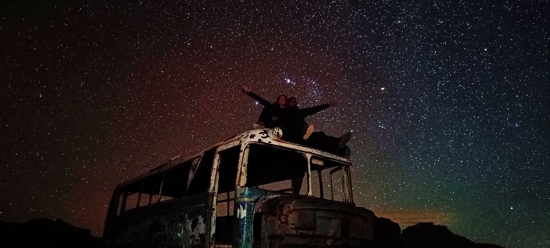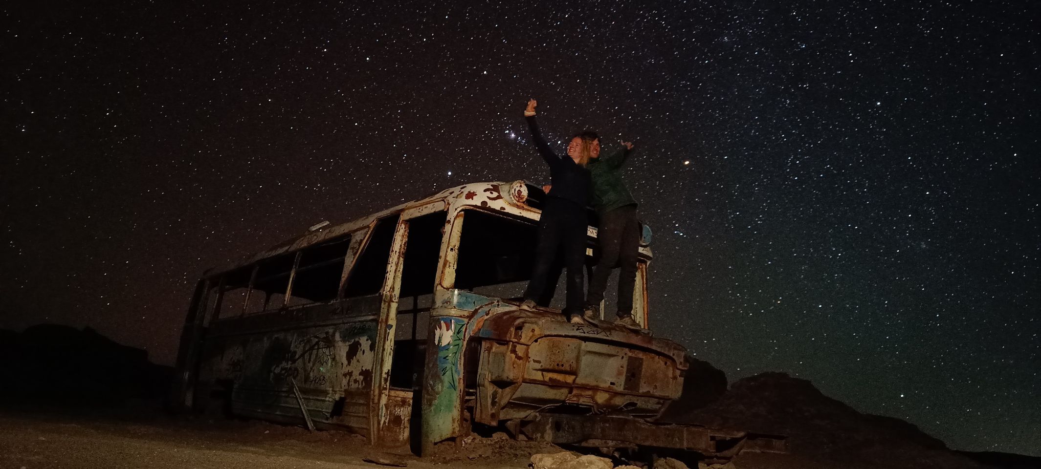 After enjoying some local carnavaleske parade through the city, we jumped into the car. On our way to the moon! Or at least to Valle de la Luna🌙. An impressive landscape welcomed us, something we totally missed because of the dark when we drived into the town the night before. We saw our first views of the existence of salt in this area and climbed to the top of a sand dune. After sunset we went deeper into the desert to look for a place with almost no light pollution. Jens lead us to the 'Magic Bus' where we made tons of pictures with the starry sky as background.🌌