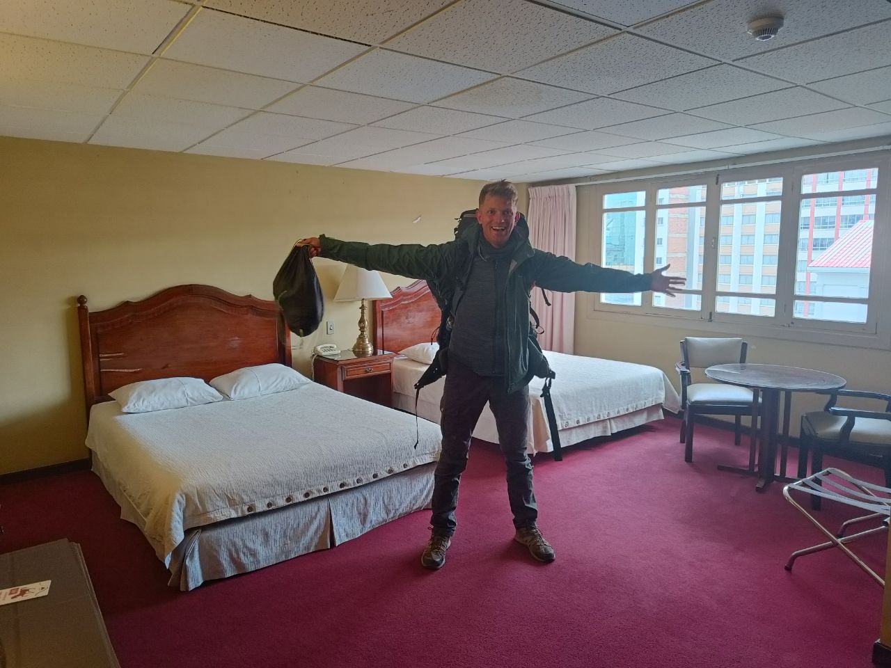 LALALALAPAZZZZZ PAAZZZPAAZZZ ☮️ Yes, we were at the bus terminal again. After an unpleasant ride with a lack of sleep, we arrived in the early mornings in La Paz! We are happy with the flexibility of our hotel, that lets us check in at 11 instead of 14:00. The next two nights we will sleep in a hotel again! We got a big room and for the first time in months an ensuite bathroom which we directly got into use! 🛀