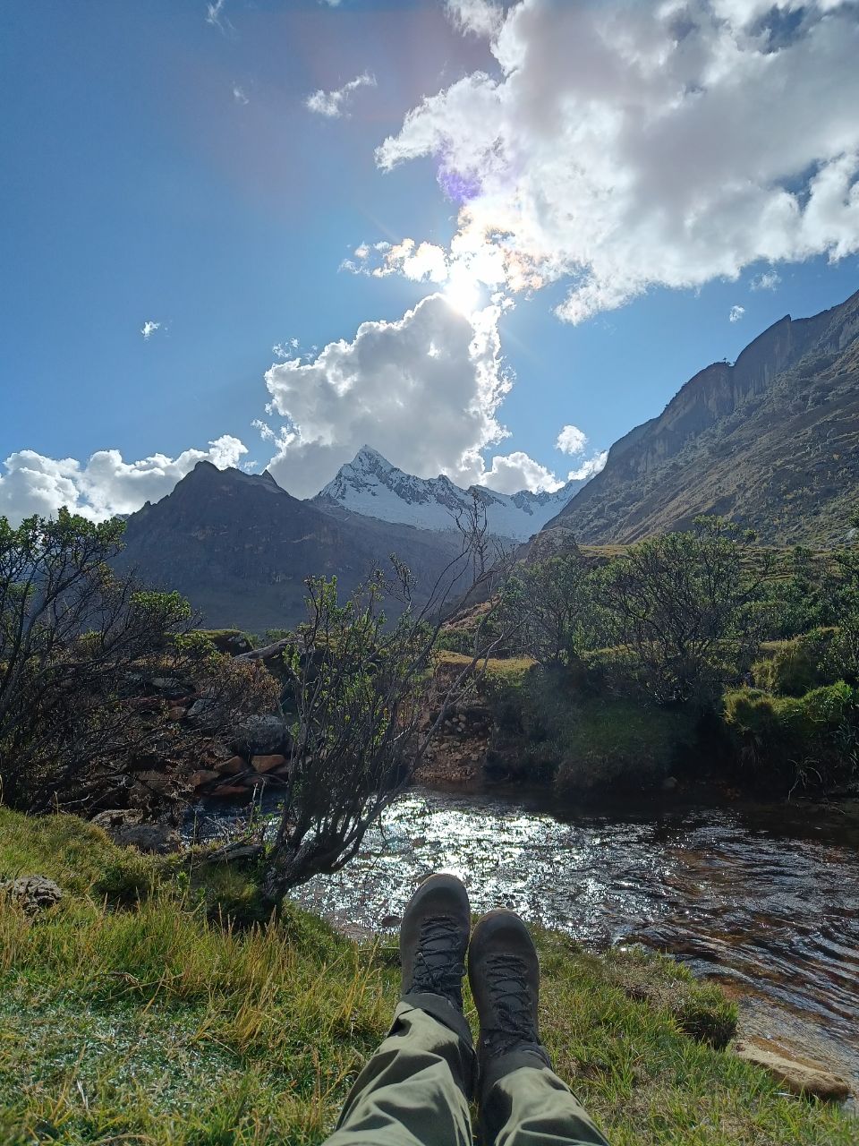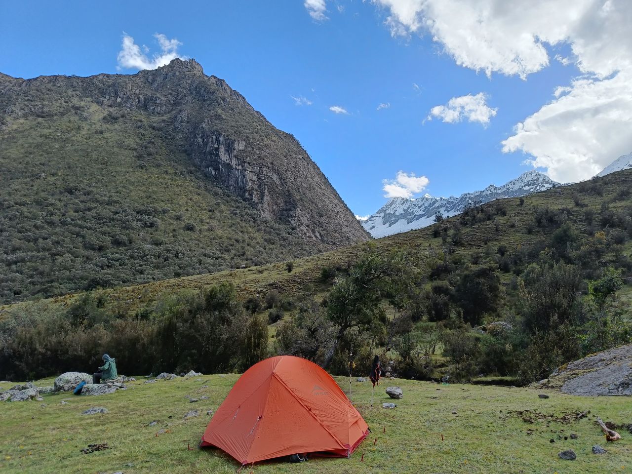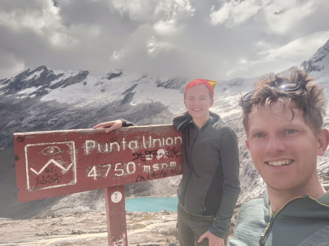 Last time for the tent to show its super power and for us to explore the mountain area at high altitude. ⛺🥾We hiked the four-day Santa Cruz trek! The adventure already started on our way to the starting point. The driver had a death wish and was eager to show his driving skills, competing with two other collectivos on the road: not being the first means no passengers = no dinero💸. It was a healthy competition to be ahead of the rest, as long as you define healthy as frightening as can be. At some point we went 100 km/h in a bend with a speed limit of 25 km/h, ooph! 🏎️ When we had to change buses, we first got confused. Nobody asked us where we were going and if we needed a ride.. we needn't worry though, as after a short minute, we got attacked by three bus drivers🤯. Gringo's with backpacks: they knew where we were heading. But don't ask for an exorbitant amount, because we know our prices (looking at you Mr driver, charging us 30 soles for a 10 sole ride!🤨) The last part of the drive took us through beautiful landscapes with lots and lots of hairpin turns! 🛣️ And we got to enjoy the landscapes for the upcoming days. All around us were white peaked mountains 🏔️. All with summits above 6000m. And when we told you the Salkantay-pass was our highest point we ever hiked to: we got a new record! This time a stunning 4850m was the goal for the second day. But man, it was hard! This time we had no mules to carry our paraphernalia. The strange thing is, it is not your legs that feel tired, it is just the lack of oxygen that makes you go so slow and makes you feel like your heart is exploding!😶‍🌫️ On the third day, a little detour took us to a beautiful mirador✨. We took the opportunity of our gas stove and made ourselves a hot cup of coffee to enjoy this beautiful view. Plus, we wanted to wait for the clouds to disappear. And almost when we wanted to leave, it happened! We got some sights on the apparently most beautiful mountain in the world. In the 60s it was voted the most majestic mountain in the world and ever since has been used as the iconic logo of Paramount! (Added a picture to compare). It was a good goodbye to our tent! Each night we had a private campspot. The only creatures we shared it with were the cows. Only Liselot's mattress disappointed her, and it was only until the final night we found the leak and could repair it! Back in Huaraz we spent several hours at the post office, sending our gear back home. Hopefully we reunite with our camping equipment back in the Netherlands! 🤗