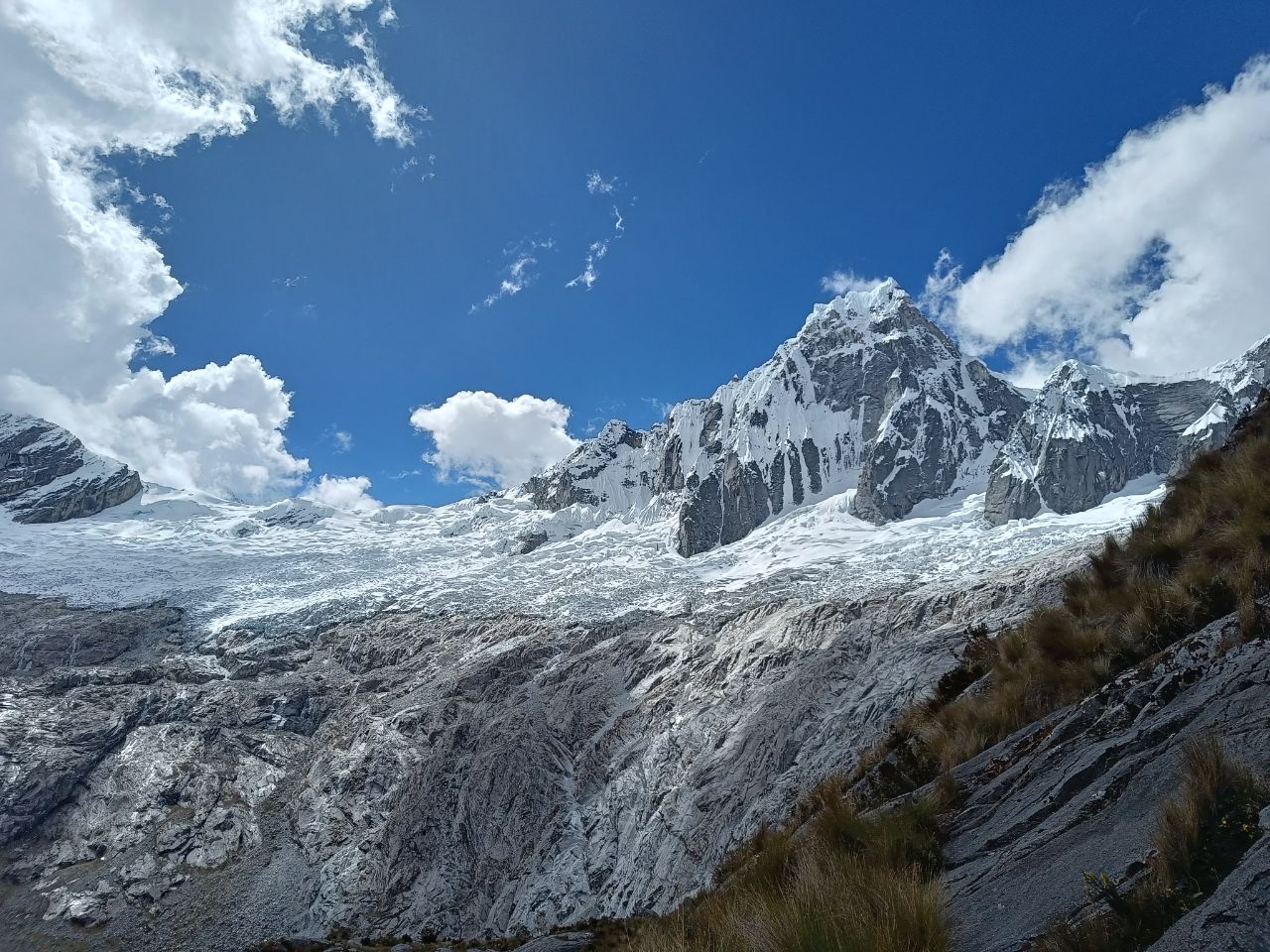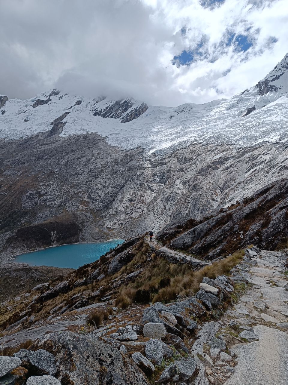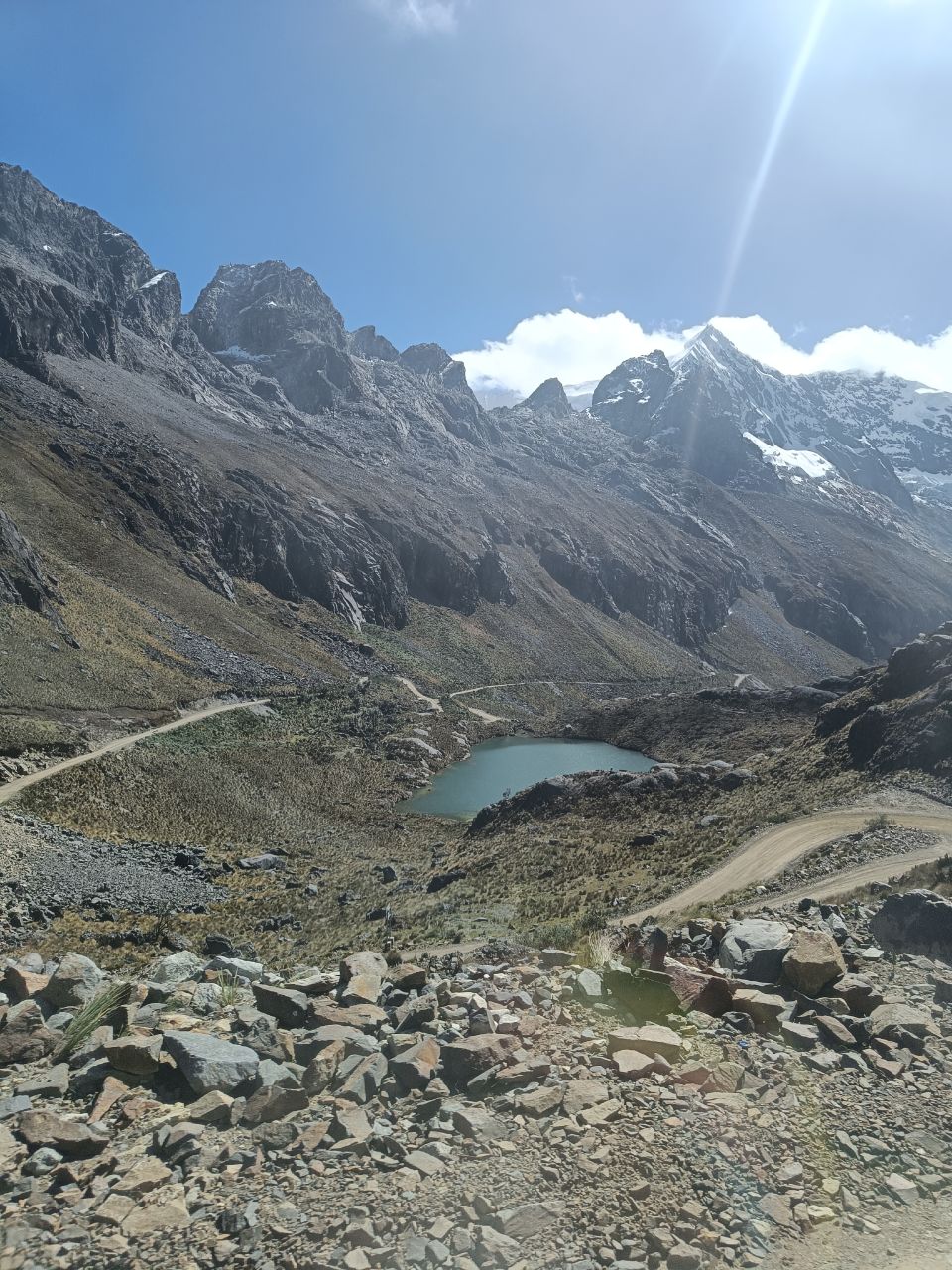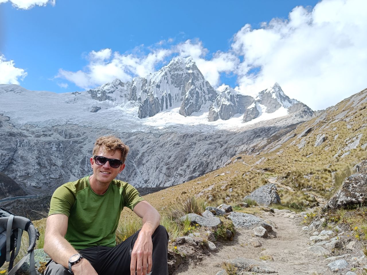 Last time for the tent to show its super power and for us to explore the mountain area at high altitude. ⛺🥾We hiked the four-day Santa Cruz trek! The adventure already started on our way to the starting point. The driver had a death wish and was eager to show his driving skills, competing with two other collectivos on the road: not being the first means no passengers = no dinero💸. It was a healthy competition to be ahead of the rest, as long as you define healthy as frightening as can be. At some point we went 100 km/h in a bend with a speed limit of 25 km/h, ooph! 🏎️ When we had to change buses, we first got confused. Nobody asked us where we were going and if we needed a ride.. we needn't worry though, as after a short minute, we got attacked by three bus drivers🤯. Gringo's with backpacks: they knew where we were heading. But don't ask for an exorbitant amount, because we know our prices (looking at you Mr driver, charging us 30 soles for a 10 sole ride!🤨) The last part of the drive took us through beautiful landscapes with lots and lots of hairpin turns! 🛣️ And we got to enjoy the landscapes for the upcoming days. All around us were white peaked mountains 🏔️. All with summits above 6000m. And when we told you the Salkantay-pass was our highest point we ever hiked to: we got a new record! This time a stunning 4850m was the goal for the second day. But man, it was hard! This time we had no mules to carry our paraphernalia. The strange thing is, it is not your legs that feel tired, it is just the lack of oxygen that makes you go so slow and makes you feel like your heart is exploding!😶‍🌫️ On the third day, a little detour took us to a beautiful mirador✨. We took the opportunity of our gas stove and made ourselves a hot cup of coffee to enjoy this beautiful view. Plus, we wanted to wait for the clouds to disappear. And almost when we wanted to leave, it happened! We got some sights on the apparently most beautiful mountain in the world. In the 60s it was voted the most majestic mountain in the world and ever since has been used as the iconic logo of Paramount! (Added a picture to compare). It was a good goodbye to our tent! Each night we had a private campspot. The only creatures we shared it with were the cows. Only Liselot's mattress disappointed her, and it was only until the final night we found the leak and could repair it! Back in Huaraz we spent several hours at the post office, sending our gear back home. Hopefully we reunite with our camping equipment back in the Netherlands! 🤗