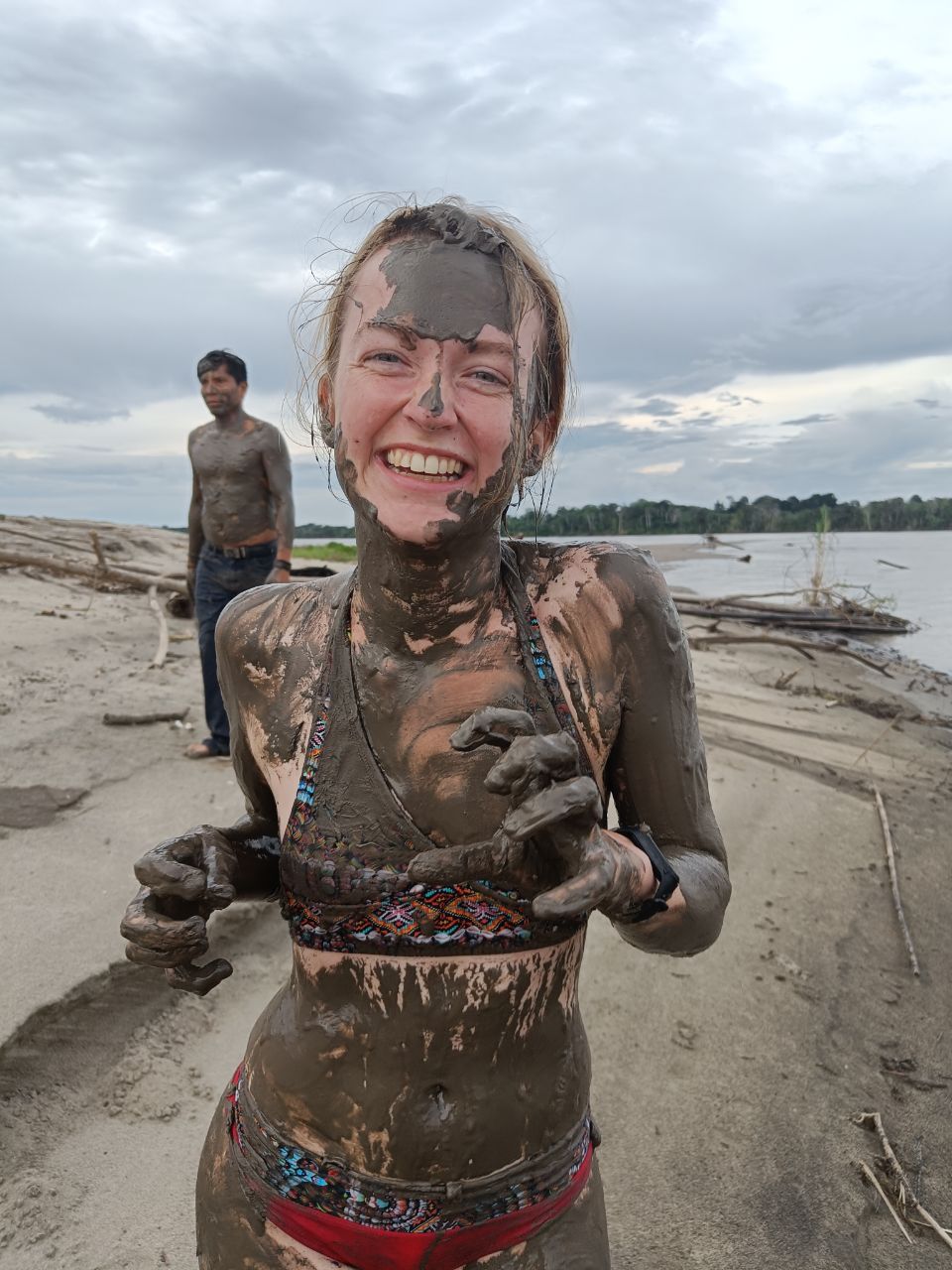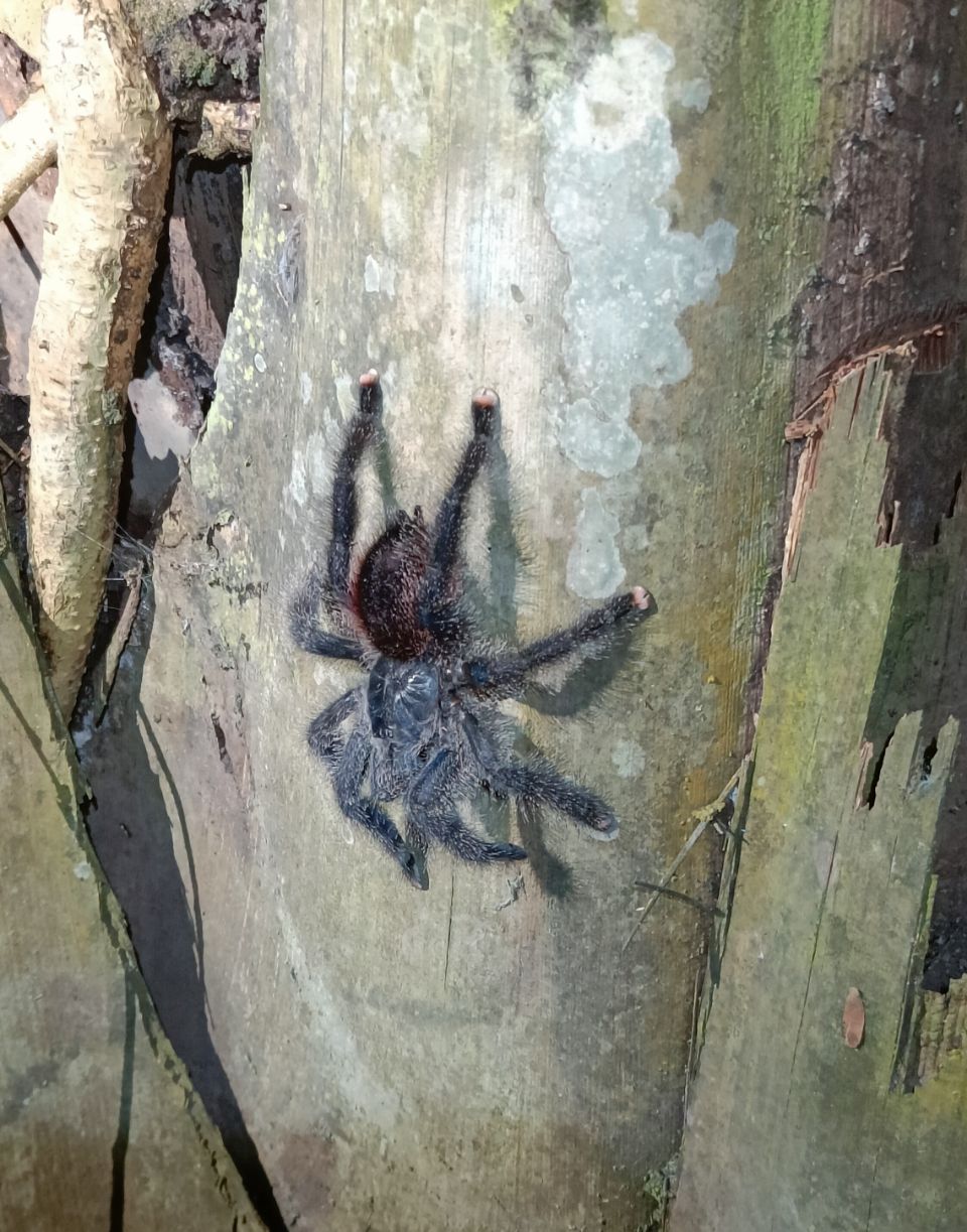 The first two days we saw soo much wildlife! The guides were great spotters and we finally saw sloths in the wild!! (too far away to get that on picture though, it's a black dot in the trees, just believe me). We saw many tropical birds, a capibara, an iguana, the snout of a caiman and we took a mud bath in the Amazone. The tarantulas🕷️ were less of a success, mainly because we got attacked by biting fire ants when we got too close. What a sweet protector. 😤