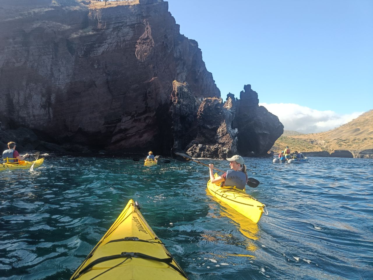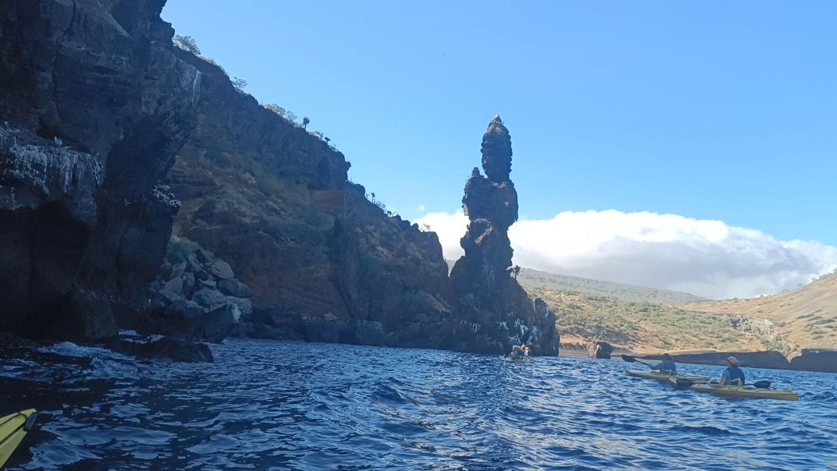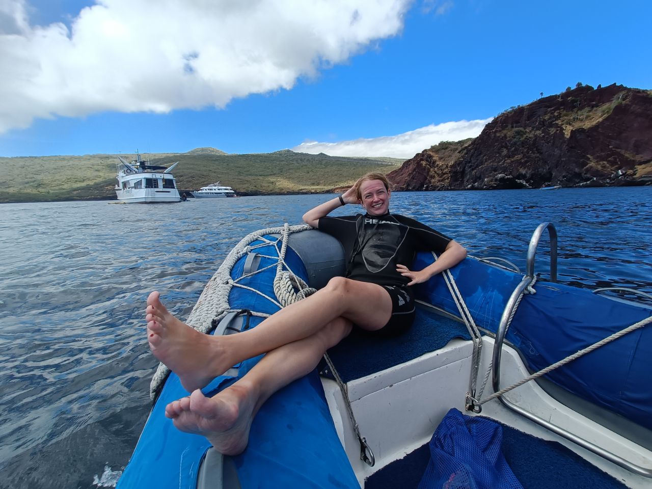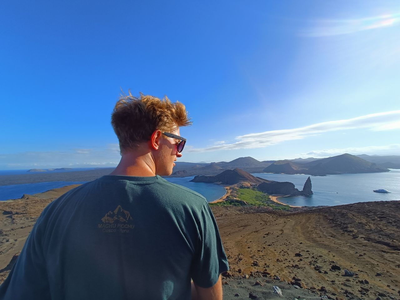 After having been fattened up for the last few days, our guide decided that we had to do some exercise. Back into the kayaks! 🛶 We kayaked past beautiful rock formations and loads of birds and guano (stinky!). After Liselot cleverly got back in the panga, the military drill began😩. Our guide Juan decided that he wanted to check out the cliffs on the other side of the bay. As the panga sped away, Frank and the others had to follow in the kayak. Only to, when they arrived, see the panga speed away to another rock a few hundred meters away... Sigh😩... After doing this funny trick a few times, Juan decided that it was time to head back to the boat. So he kindly asked if we could kayak back there, another half a km or so. Frank was happy to cool down snorkelling afterwards. We almost got assaulted by a booby though, who showed it's spectacular diving skills right next to us! (Unfortunately it seems that Liselot deleted the video 😢😢). [But look at the grumpy fish🐠 from finding Nemo that Liselot spotted in the water, not the best quality though 😔] In the afternoon we had our final snorkelling experience. And it was great! We saw sharks, a stingray and huge shoals of fish! Our final hike was up on Bartholomew Island, with beautiful lunar and martian landscapes. We are going to miss this!