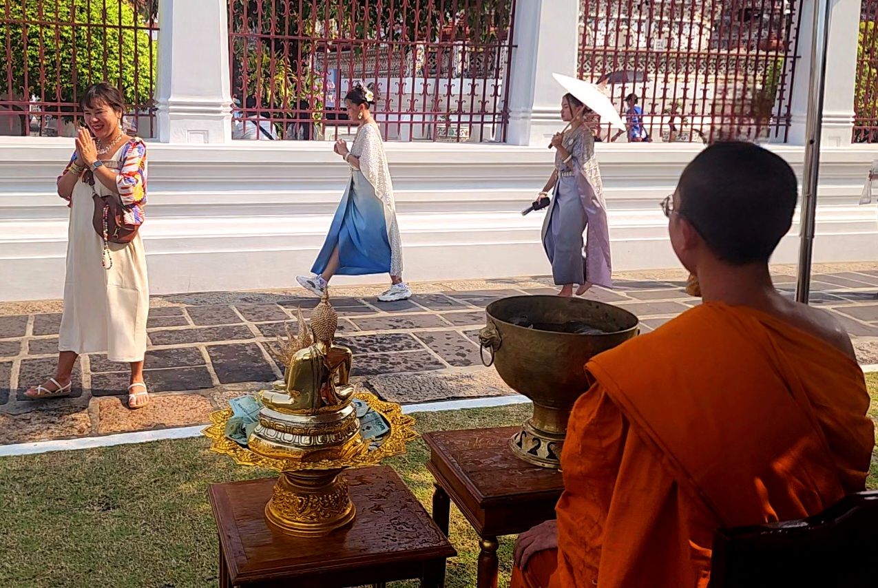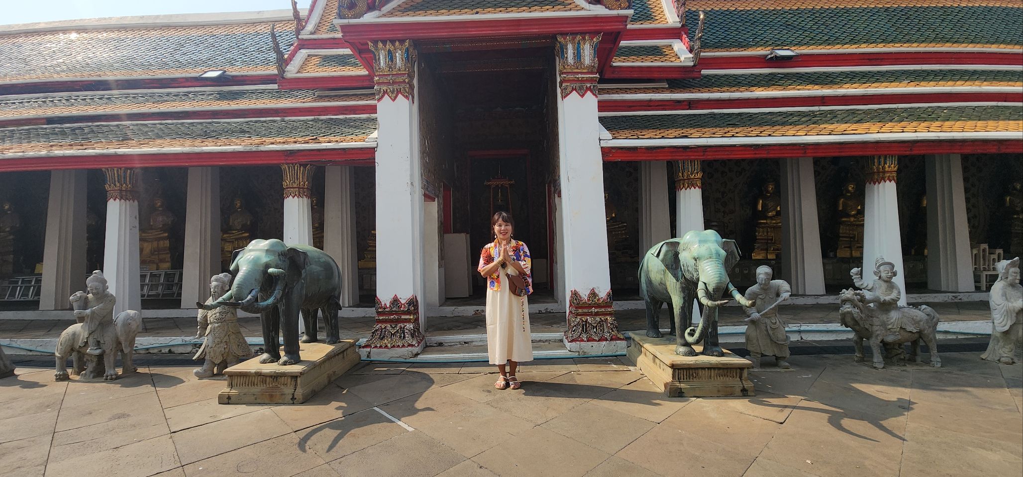We visit the beautiful Wat Arun. We are blessed by the monk as we wander in the wat by the river.