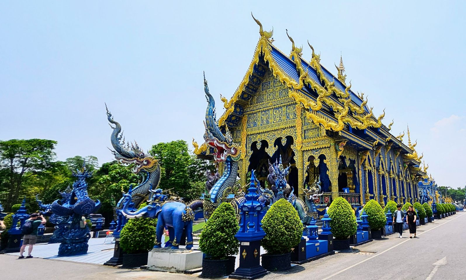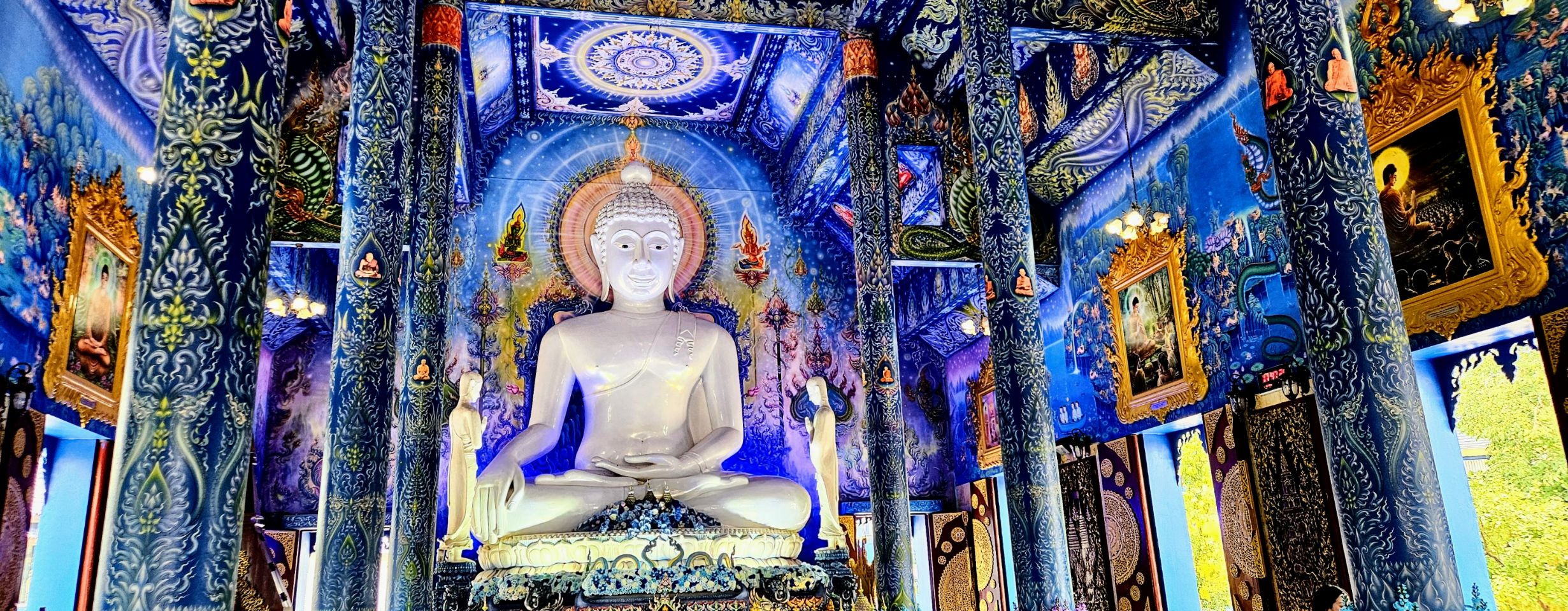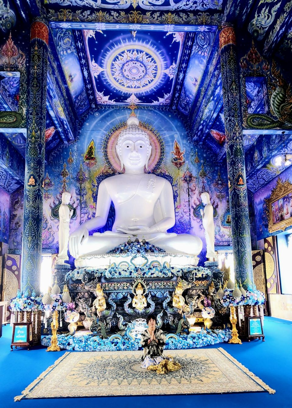 An unusual temple, the blue temple skates on the border between monarchy and death. Blue is the color of the monarchy. But this dark sky color is also associated with infinity and emptiness.