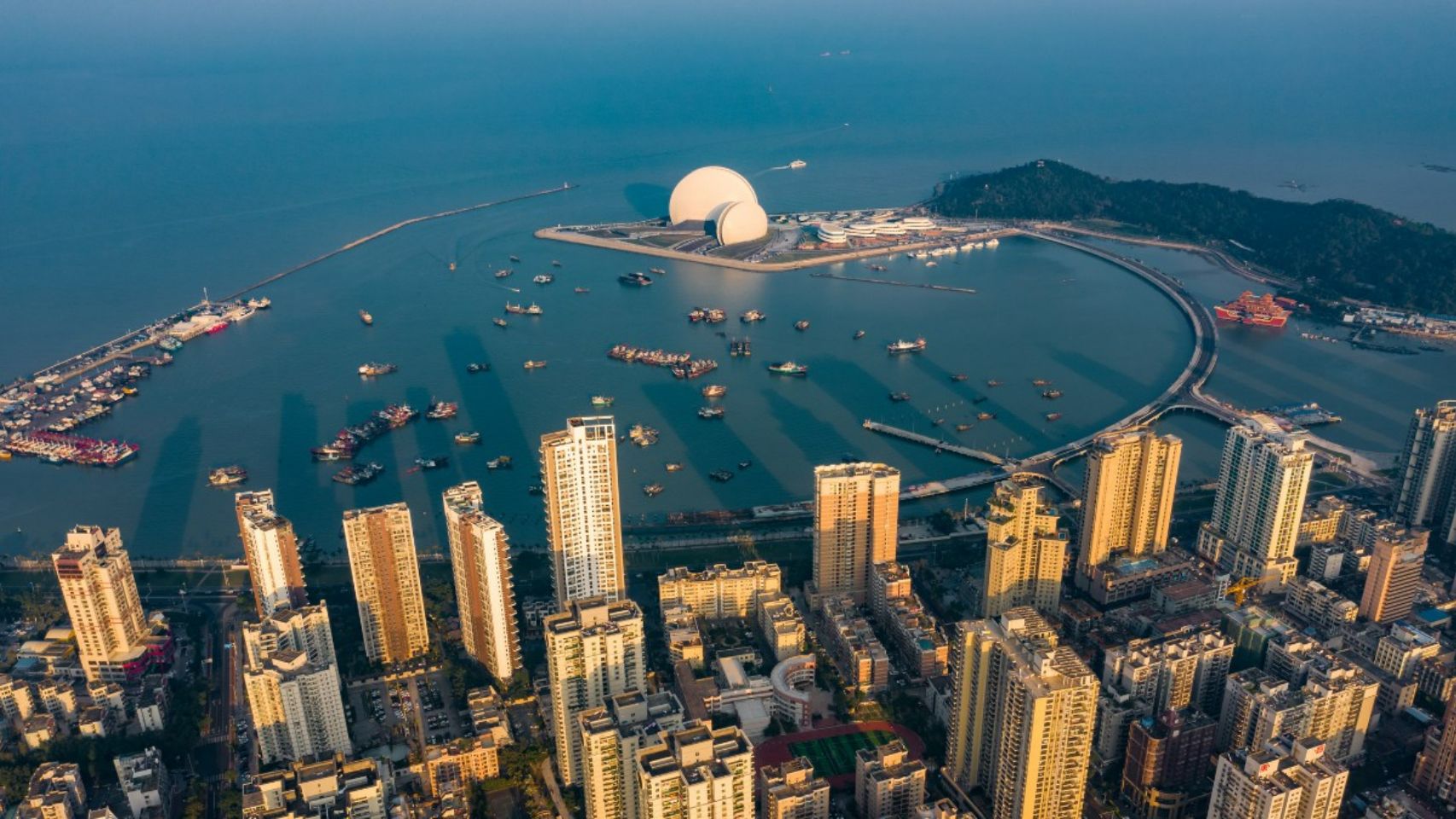 Zhuhai sits on the South China Sea between vibrant Hong Kong and glitzy Macao, the Las Vegas of Asia.