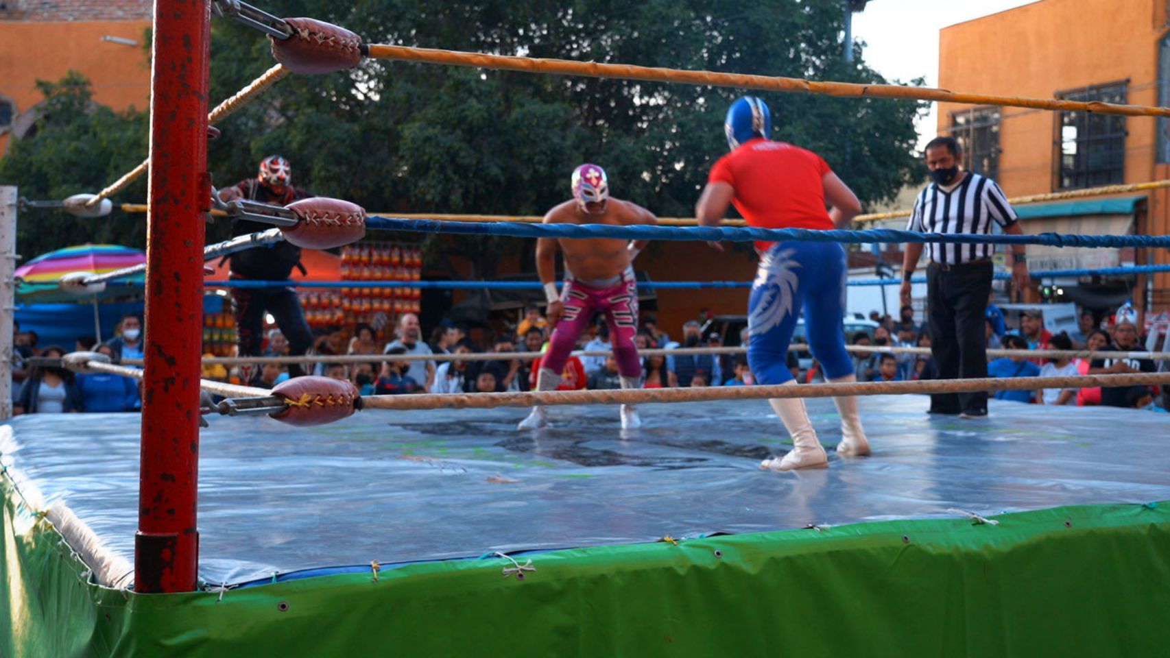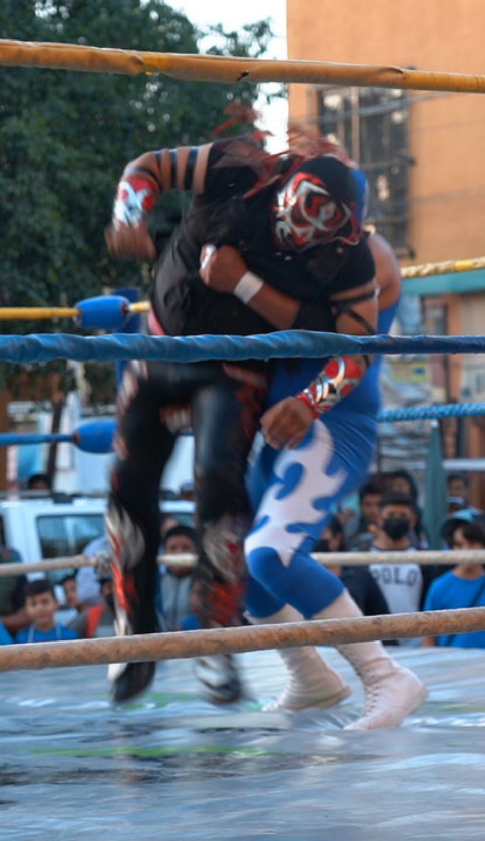 We stumbled upon a Mexican wrestling match and were embraced by the winner.