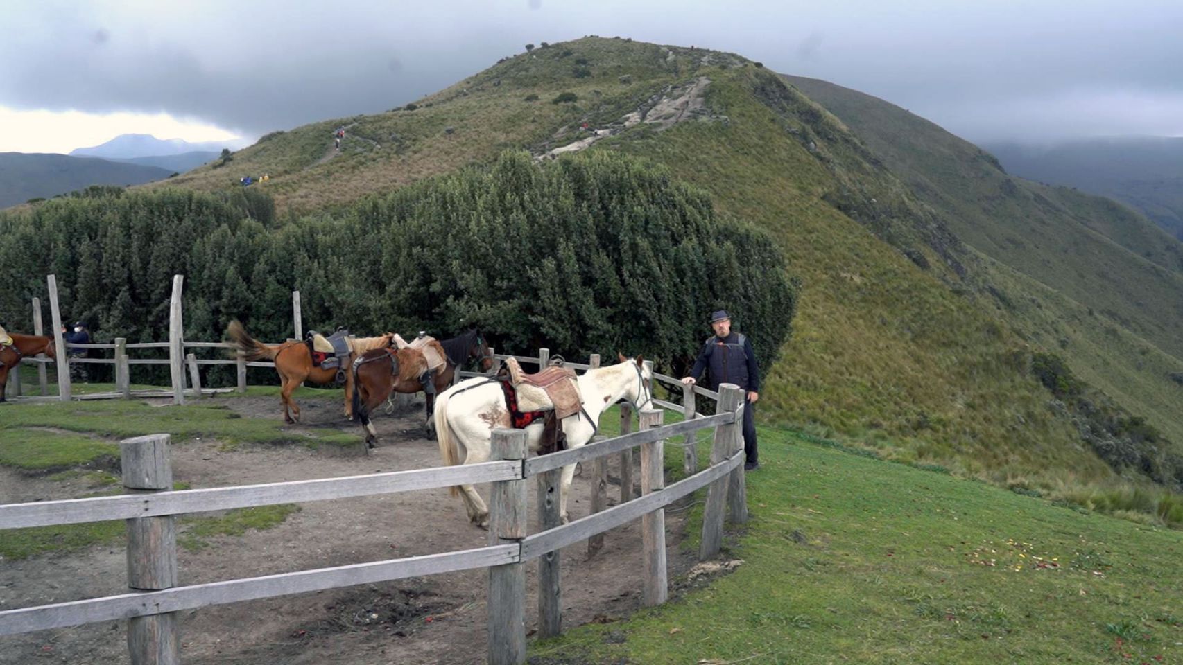 Pop up in altitude from the second-highest city in the world, Quito, to the ridge of Pichincha volcano. The mountain overlooks Quito. Thin air exhausts us but we are rewarded with breathtaking views.