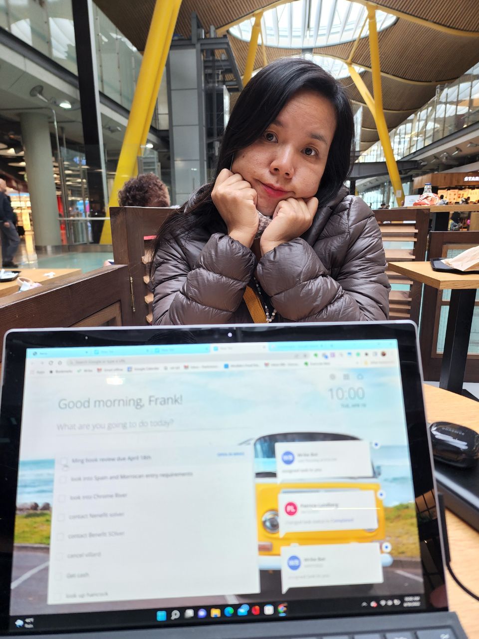 Stop over in Madrid on our way to Marrakesh. Sleepy after our bumpy overnight flight.
