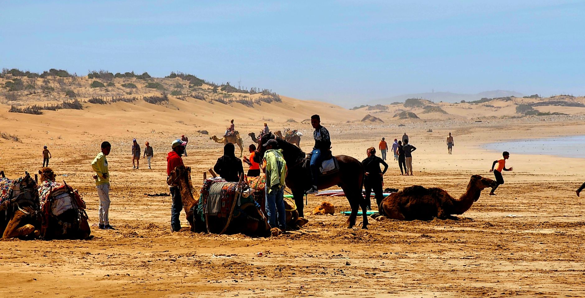 A windy beach with camels, horses, kite surfers, and Jimi Hendrix's old house.