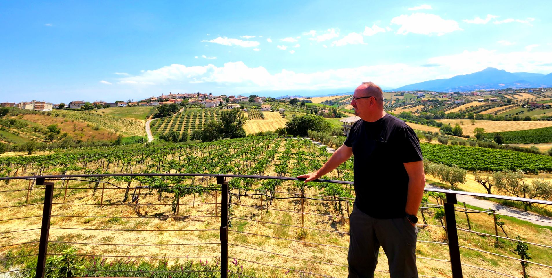 We stop, dine, and spend the night at an old organic winery, Emidio Pepe. This is a family business that still crushes the grapes with their feet. The location is stunning. As we dine by sunset old man Emidio comes out. This wine, which I have enjoyed in the US, can be a little pricey but now it comes with memories.
