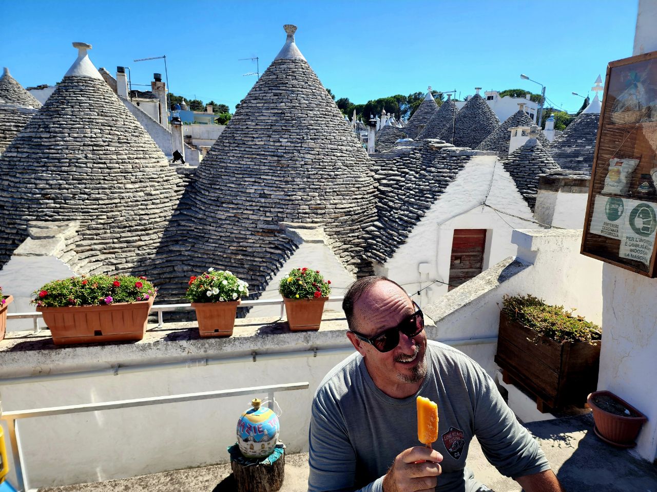 This is unique village of "trulias" round homes made completion of stone including the unique cone roofs. Hannah called them cute smurf homes.