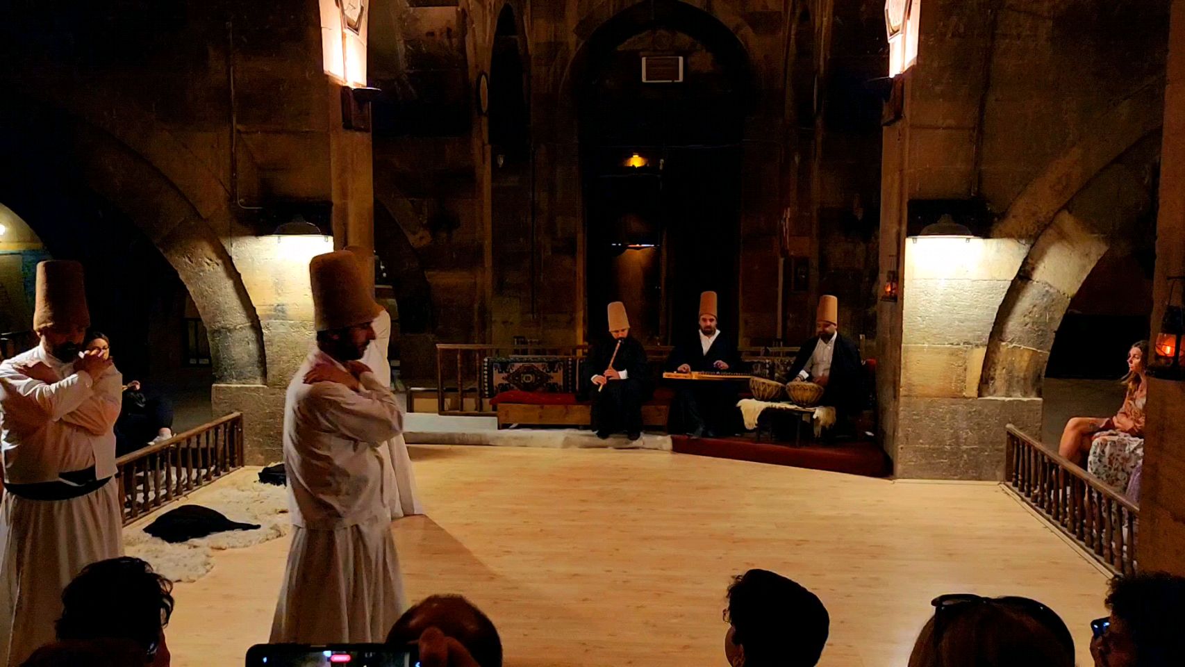 Whirling dervishs pray in ancient silk road caraversan - Deringku