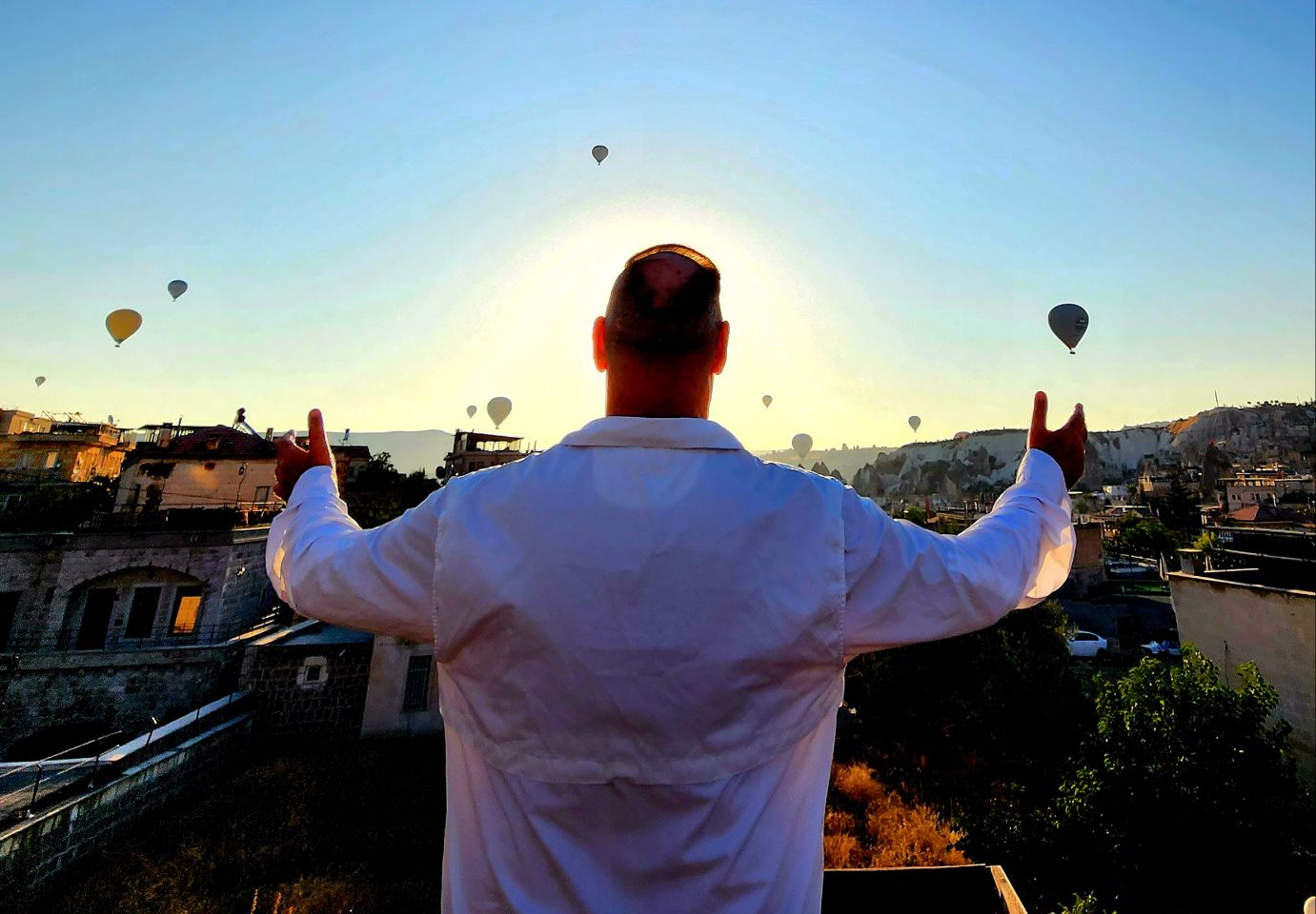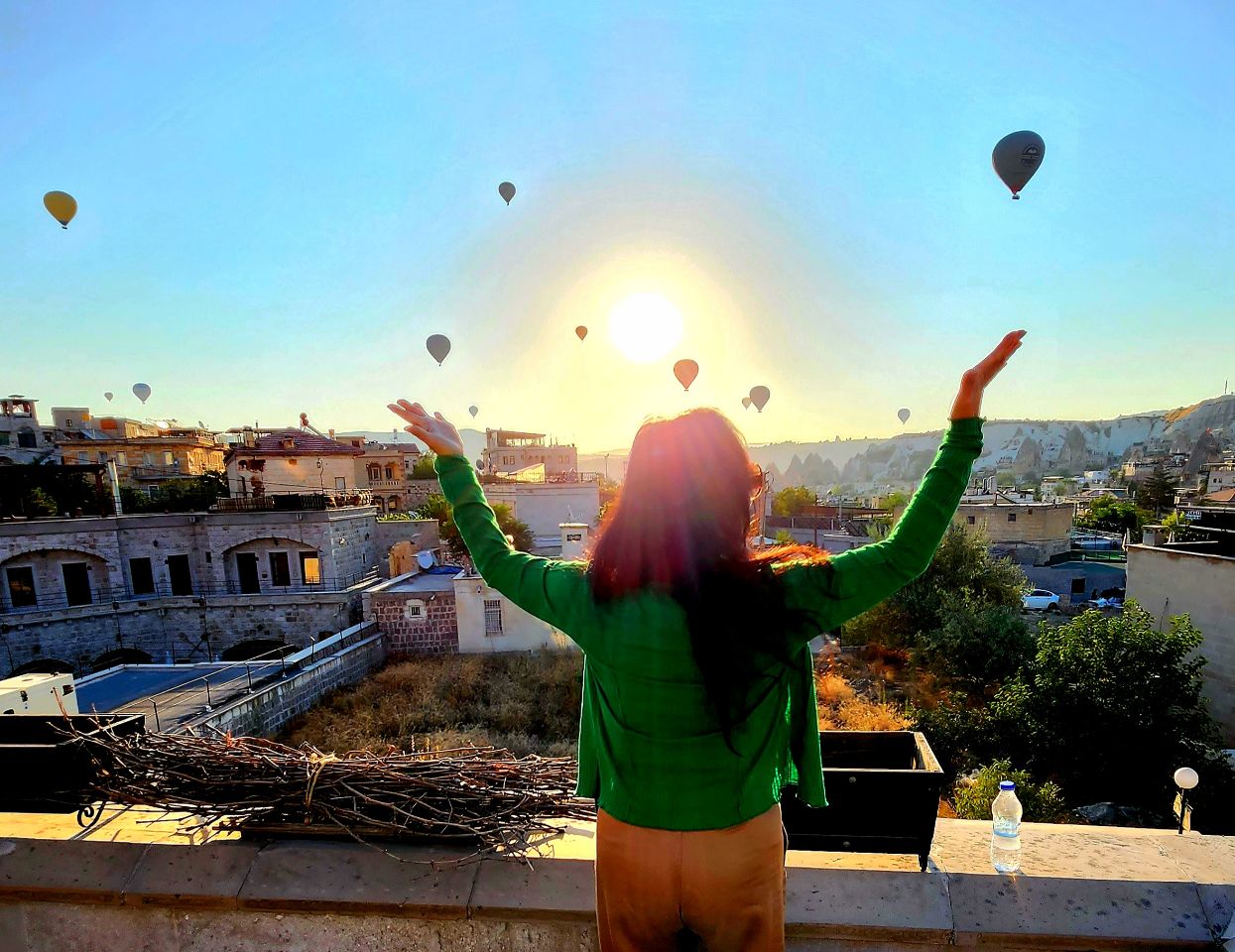 We rise before dawn to the chant of the mullah ready to soar into the sky. Hannah cries at the beauty of 165 balloons floating upward lit up like fire flies at daybreak. Our balloon flies over stone spires as the sun rises and our spirits are lifted.