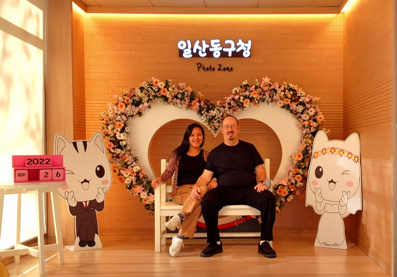 In our fourth marriage event we finally obtain an official Korean marriage certificate. We enjoy the cheesy photo bomb set up at the clerk's office.