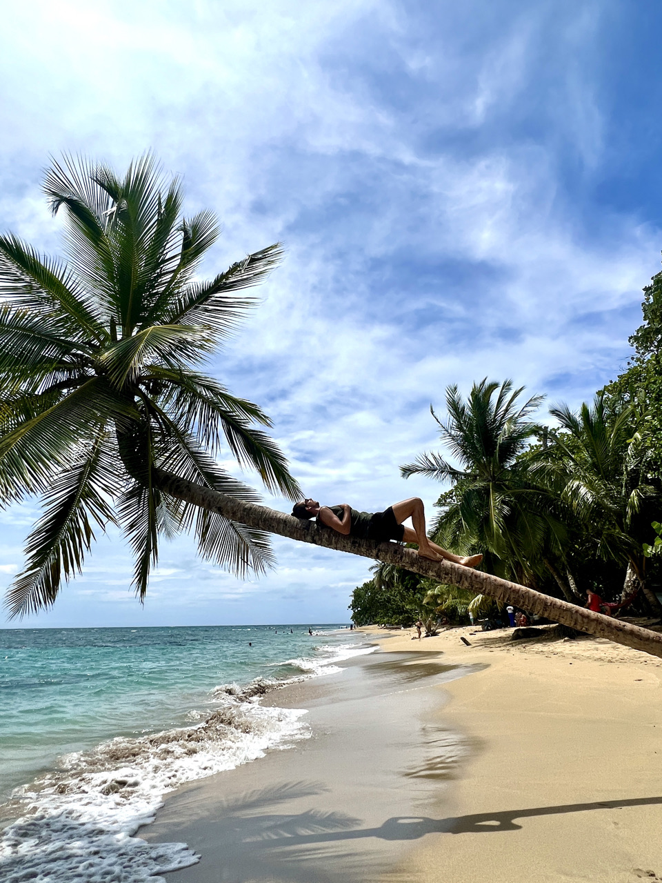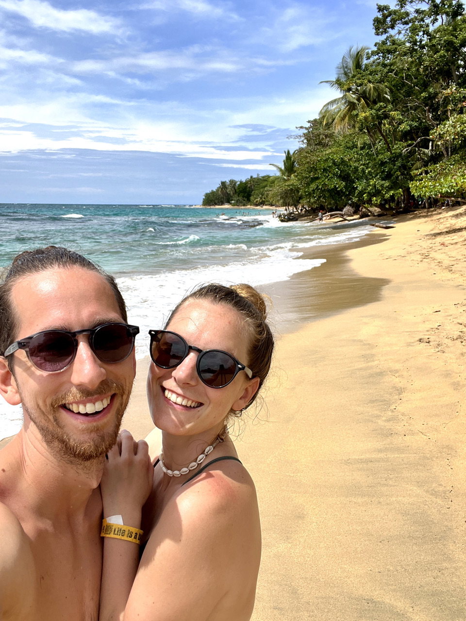 Bei strahlendem Sonnenschein und guter Laune ging es dann 5Km Richtung Süden nach Punta Uva. Dort machten wir Rast wir am Strandabschnitt und schlenderten durch die Karibische Bucht. Ein sehr beliebter Strand unter Einheimischen. Und da wir am Wochenende hier waren, hatte jeder seine Campingausrüstung dabei und genoss das Wetter in seiner Hängematte mit ‘nem Bier. Trotz des Trubels war es ein wunderbarer Strand bei dem wir vor allem die Abkühlung im karibischen Meer sehr genossen haben 🏝️