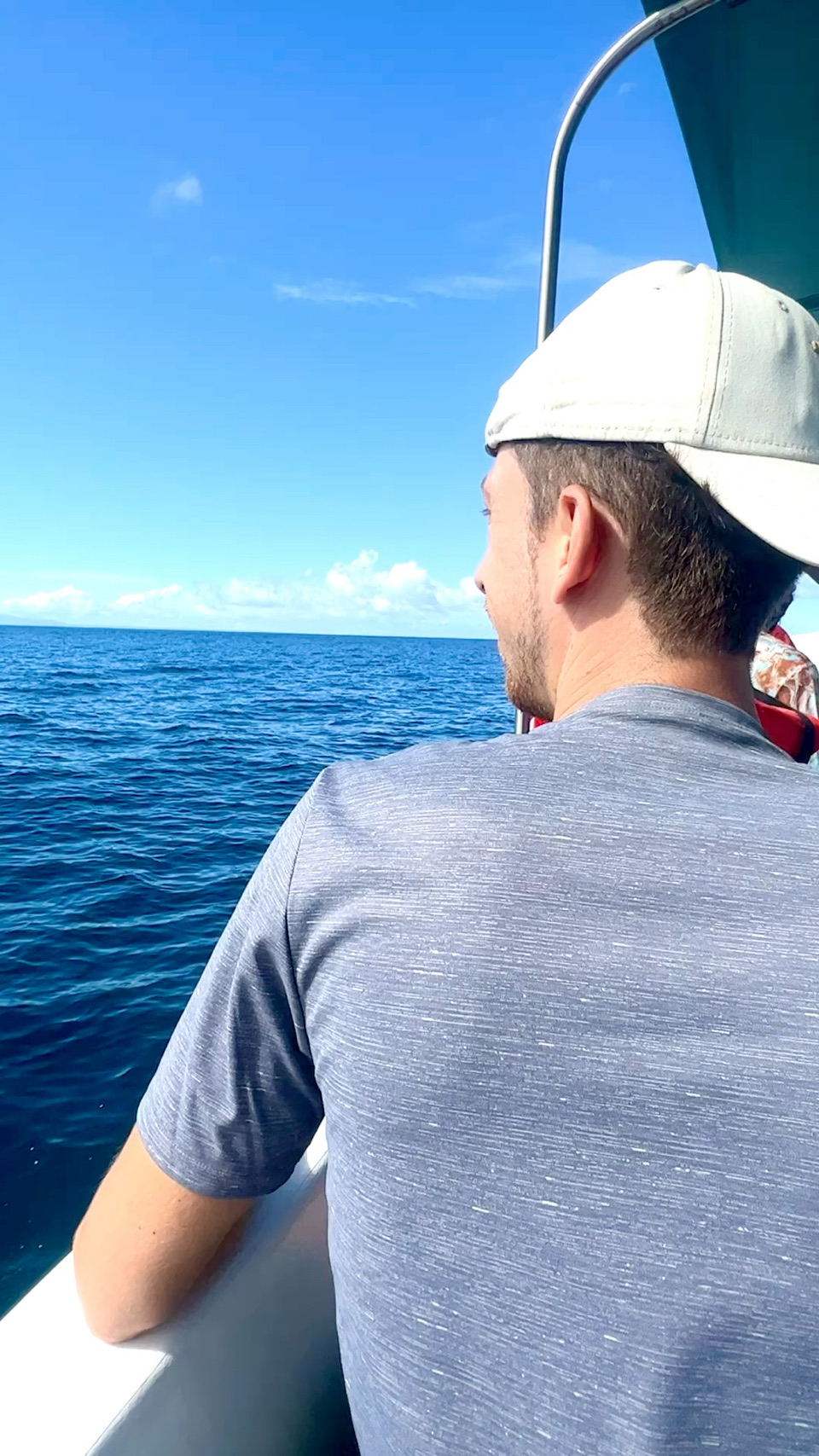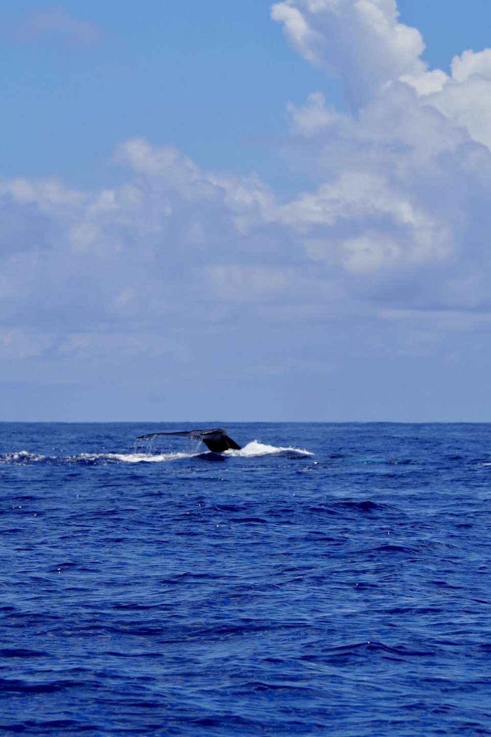 Zwischen Tauchgängen muss man immer Pause machen, damit der Körper sich etwas regeneriert von Druck, Luftsättigung und co. Dafür ging’s spontan auf die Insel. Die ist streng reglementiert, weil es ja ein Nationalpark ist. Nichtsdestotrotz gibt es einen kleinen Trail zu einem Aussichtspunkt und man konnte das Wasser nochmal von oben erblicken 🌴Und plötzlich Griff Maxi die Kamera, zoomte mit dem Teleobjektiv ins Meer hinaus und sah Wale aufsteigen!!!! 📷 🐋 Sofort ging’s per Sprint zurück zum Boot und wir fuhren für ein paar Minuten in die Nähe der Walfamilie, die immer wieder an die Luft zum Atmen auftauchte. Was für wunderbare Geschöpfe. Riesengroß und doch so eine leichte Eleganz. Eigentlich hatten wir ja nur ein Tauchtrip gebucht und trotzdem wollten uns die Wale auch mal „Hola!“ sagen. Und das vor der eigentlichen Walsaison - danke liebe Wale 🐋✨