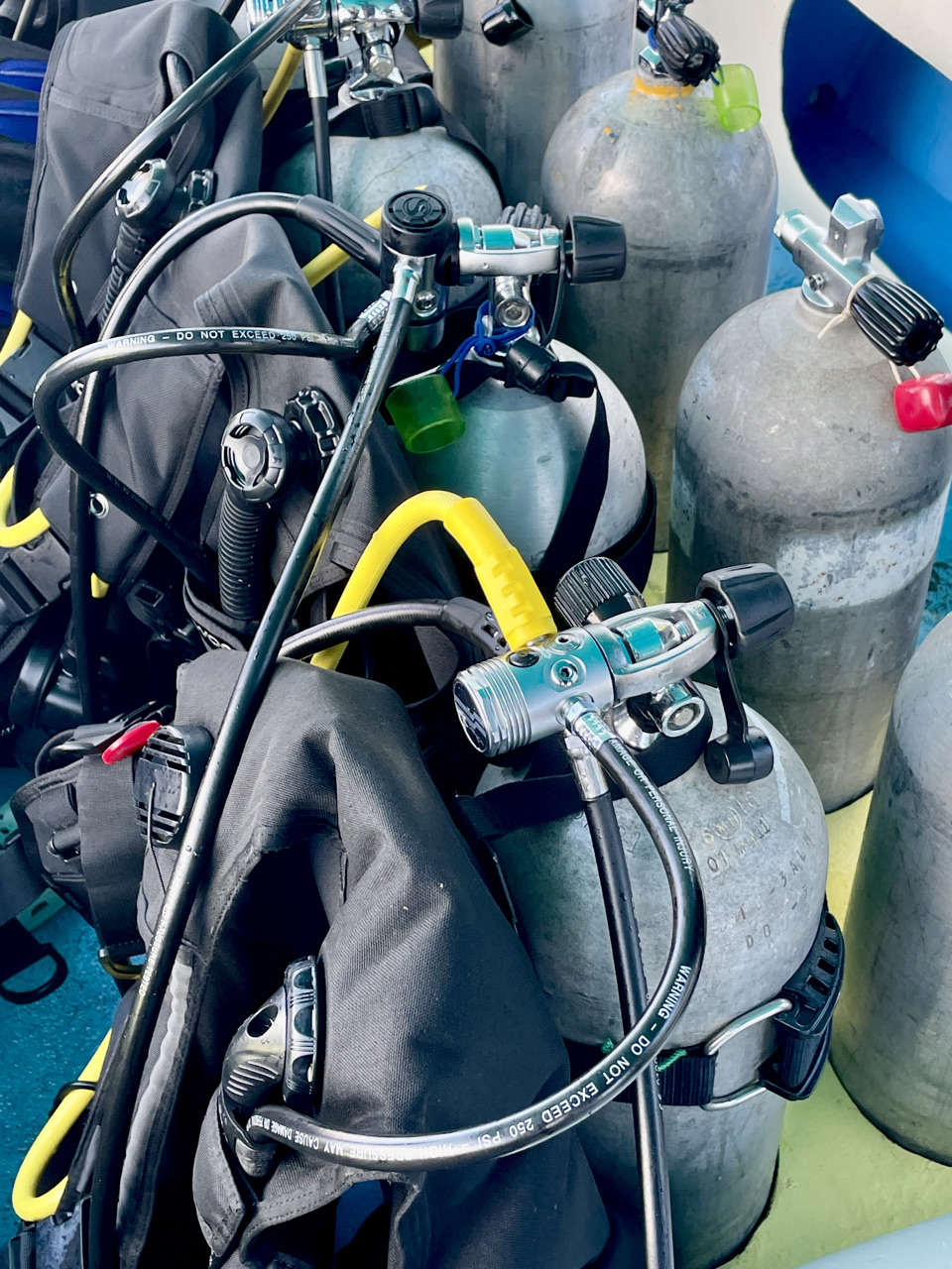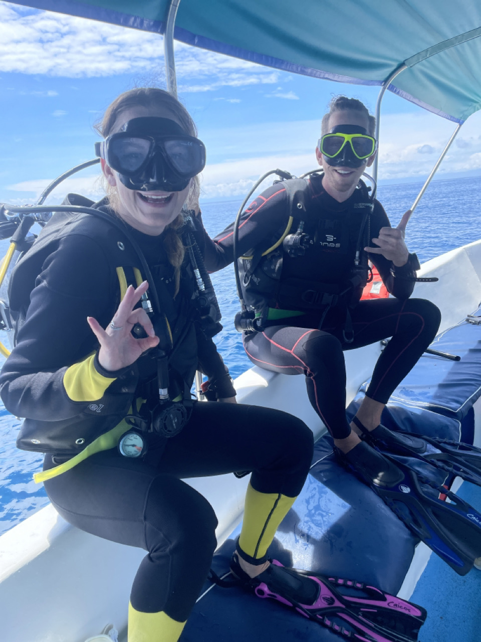 Nach einer guten Stunde Fahrzeit zeigte sich dann die Isla del Caño. Das Wasser um uns herum erstrahlte in einem Blauton, den wir noch nie zuvor gesehen haben und keine Kamera der Welt einfangen kann 🔵 Es war kein türkis, sondern eine Art sattes Petrol mit einem Schuss tiefes blau, das eine wahnsinns Klarheit hat. Einen Moment wirken lassen und dann hieß es direkt: Bereitmachen für den ersten von zwei Tauchgängen. Maxi war die ganze Zeit schon nervös, weil es der erste richtige Tauchgang nach dem Open Water Schein war 🌊 Doch das war mitunter auch ein Grund direkt wieder tauchen zu gehen, um weiter in der Übung zu bleiben.