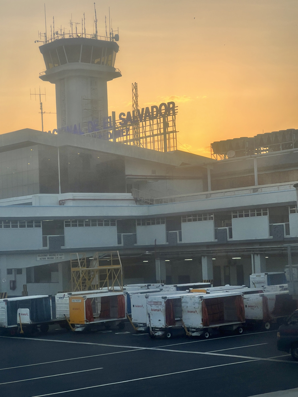 Weiter gehts… Mit einem kurzen Flug ging’s von Costa Rica nach San Salvador. Um 19 Uhr am Flughafen angekommen war’s wie im Kühlschrank. Die temperieren das auf gefühlte 12 Grad runter - das braucht wirklich keiner 🥶 aber zum Glück hatten wir nur einen Aufenthalt von 3 Stunden. Der vergeht mit Laufen, Essen und bisschen am Handy spielen sehr sehr schnell 📱