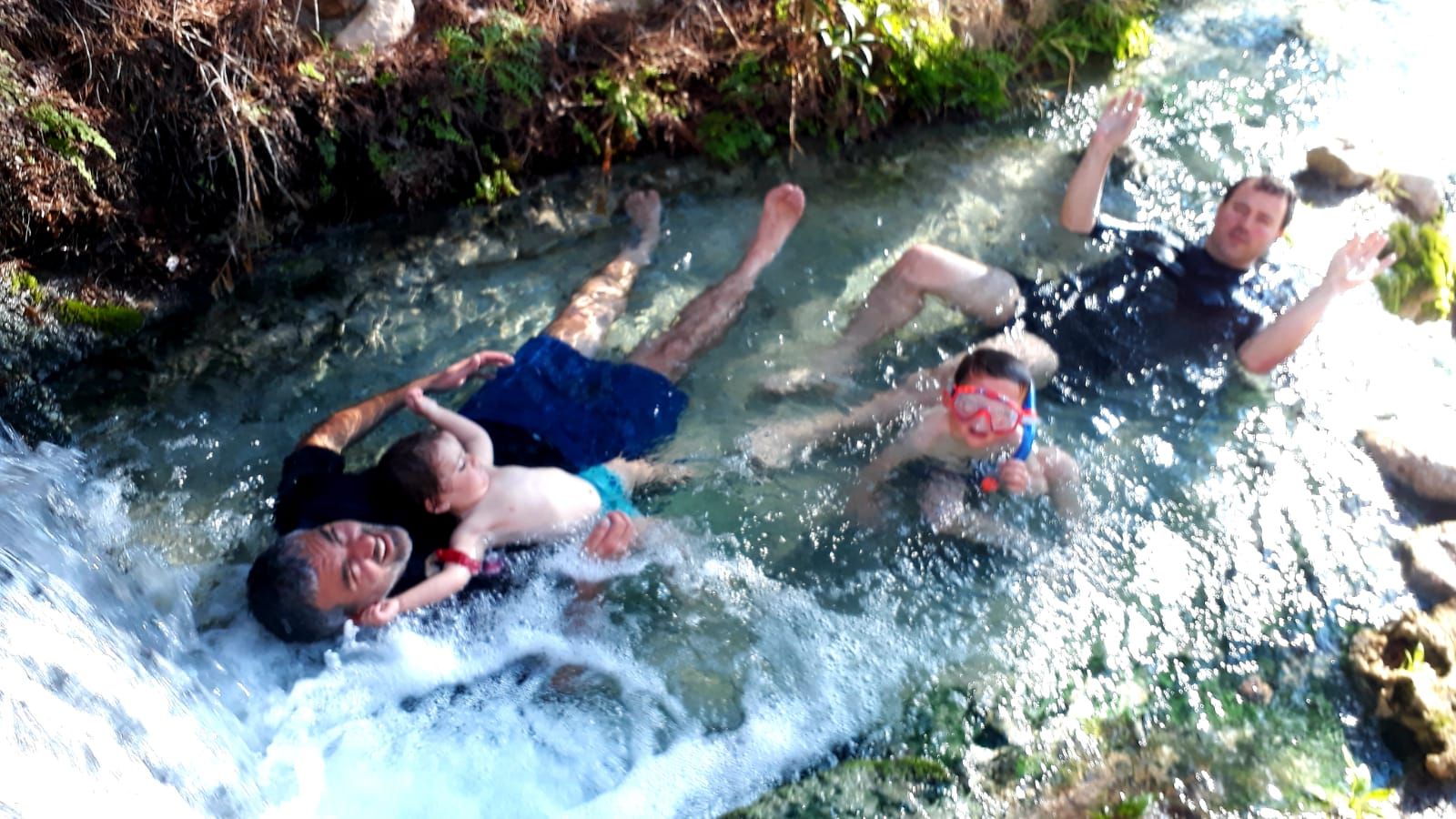 Source d eau chaude et découverte de ce super site avec notre ami Tanguy! De la détente et du bonheur pour tous! On est heureux d être avec lui!