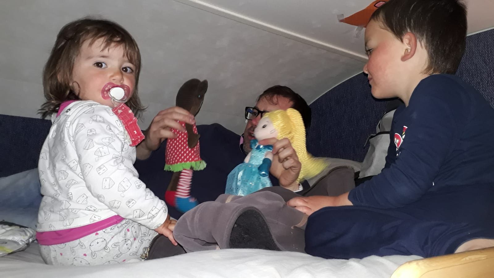 Moments de complicité entre Tanguy et les enfants et soirée mots fléchés entre amis.