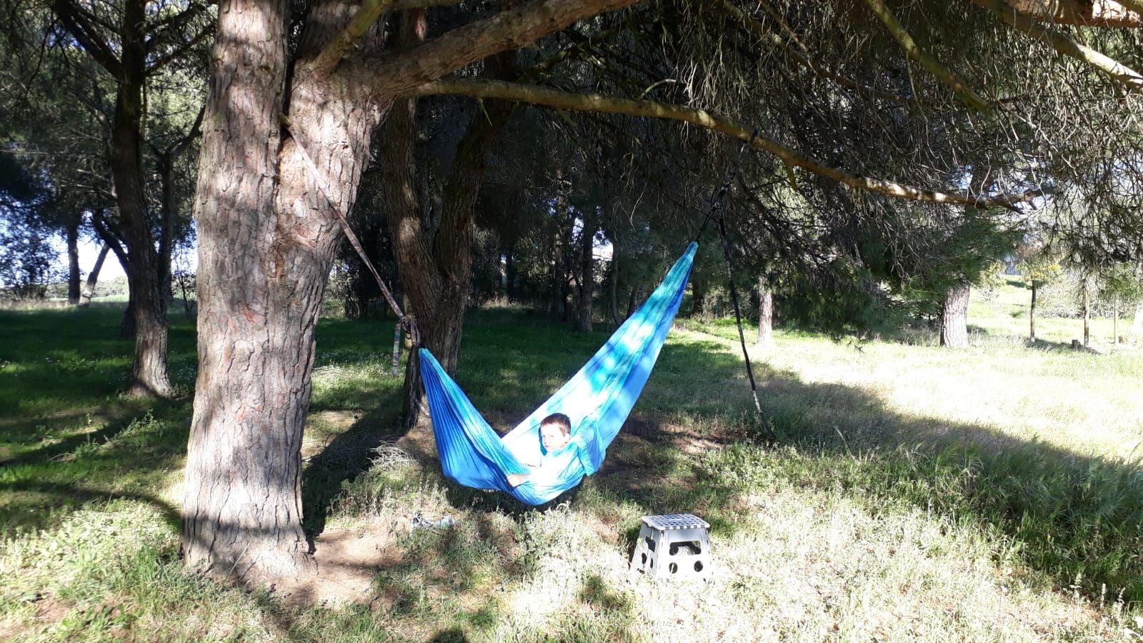 Il fait bon, les oiseaux chantent, on se repose en mode hamac. Petite cuisine en plein air: un tiramisu ce soir!!!! Miam!