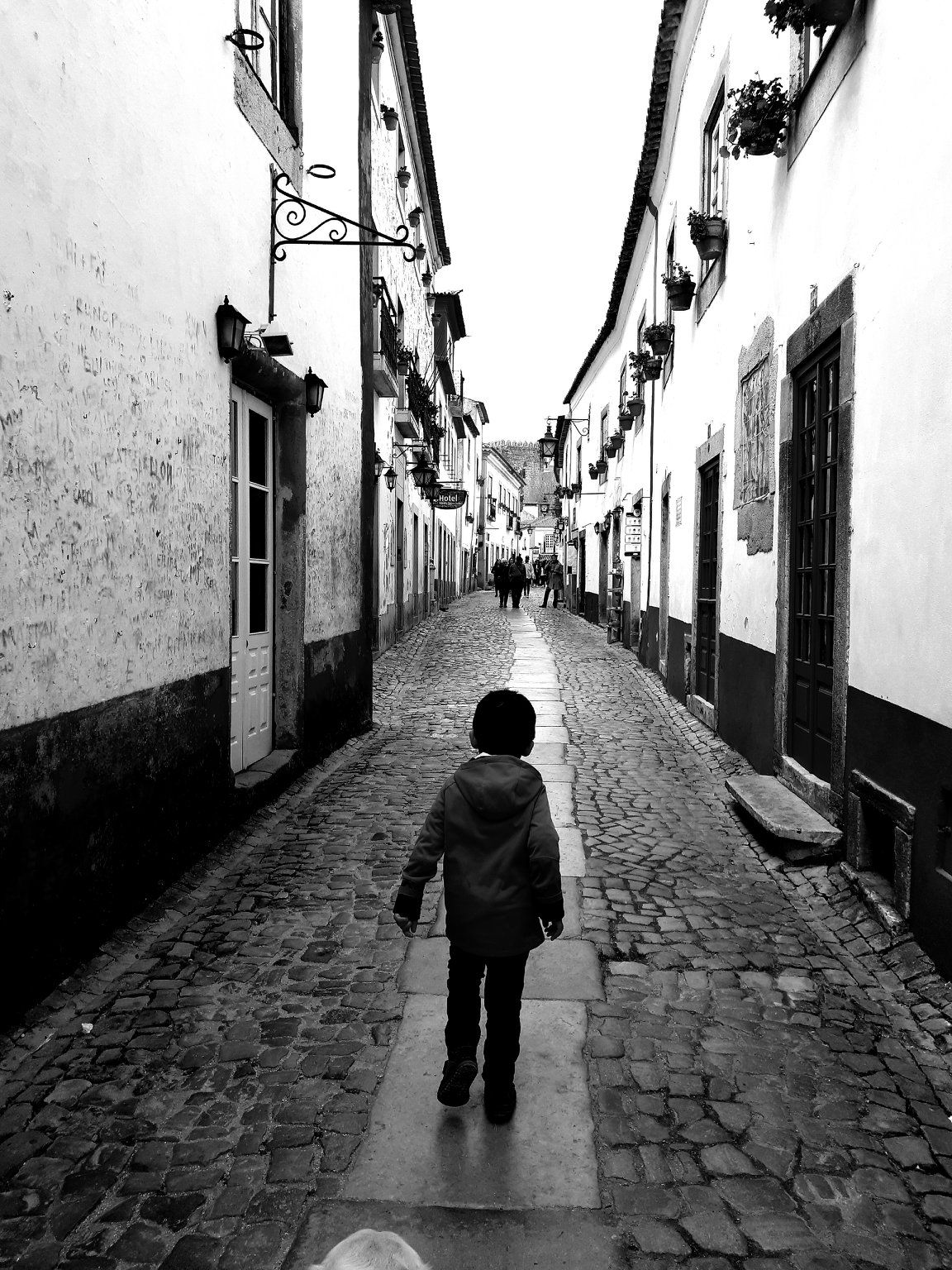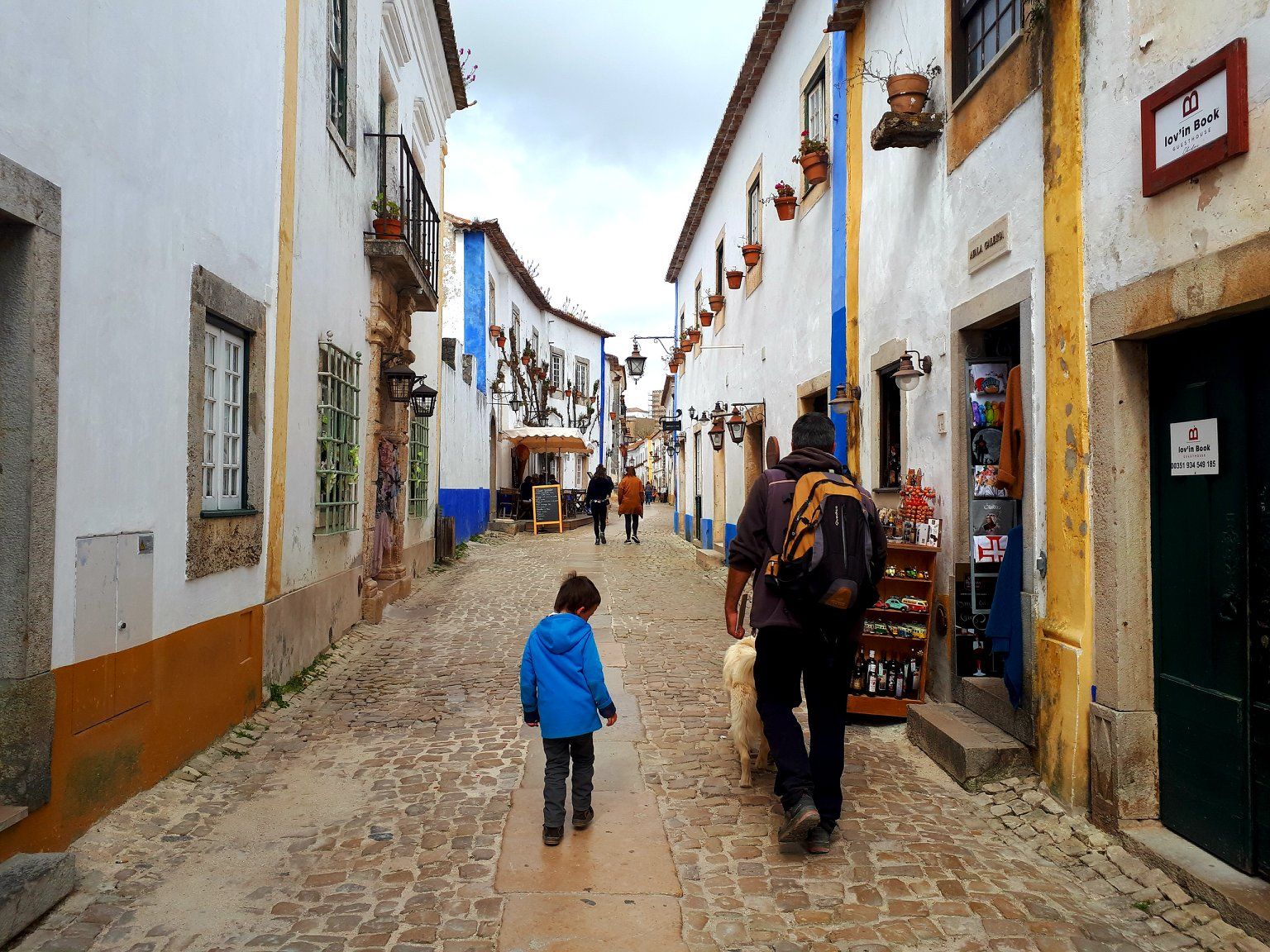 Découverte du joli village fortifié d'Obidos. On marche sur les remparts étroits... sensation vertigineuse!!!!