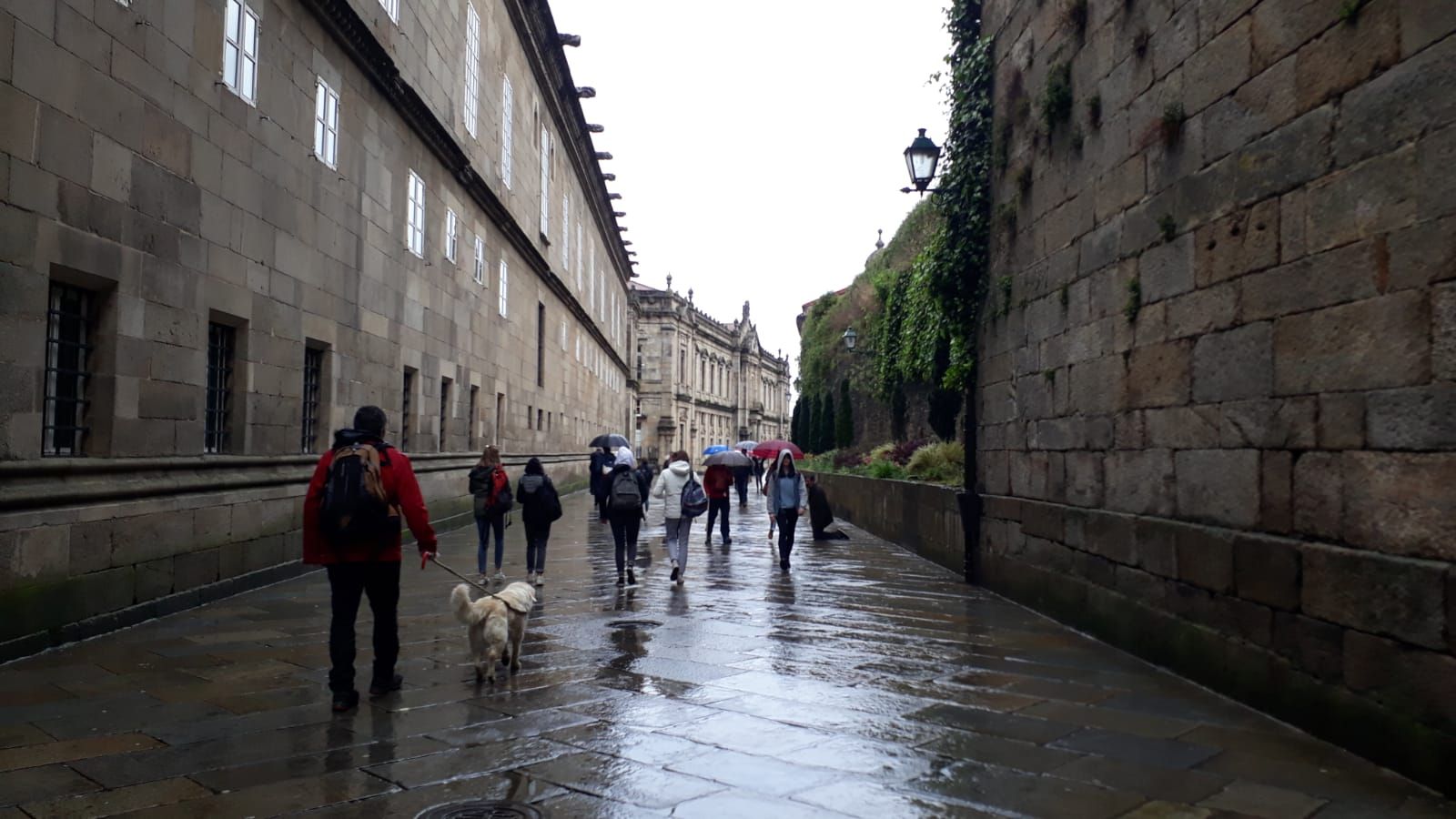 Après avoir trouvé une place de parking grâce aux Schooloflifech que nous retrouvons, nous partons à la découverte de Santiago de Compostela ... sous la pluie! Niveau temps, on se croirait en Bretagne, les températures ont bien chuté! On s'était habitué au soleil!!!😀