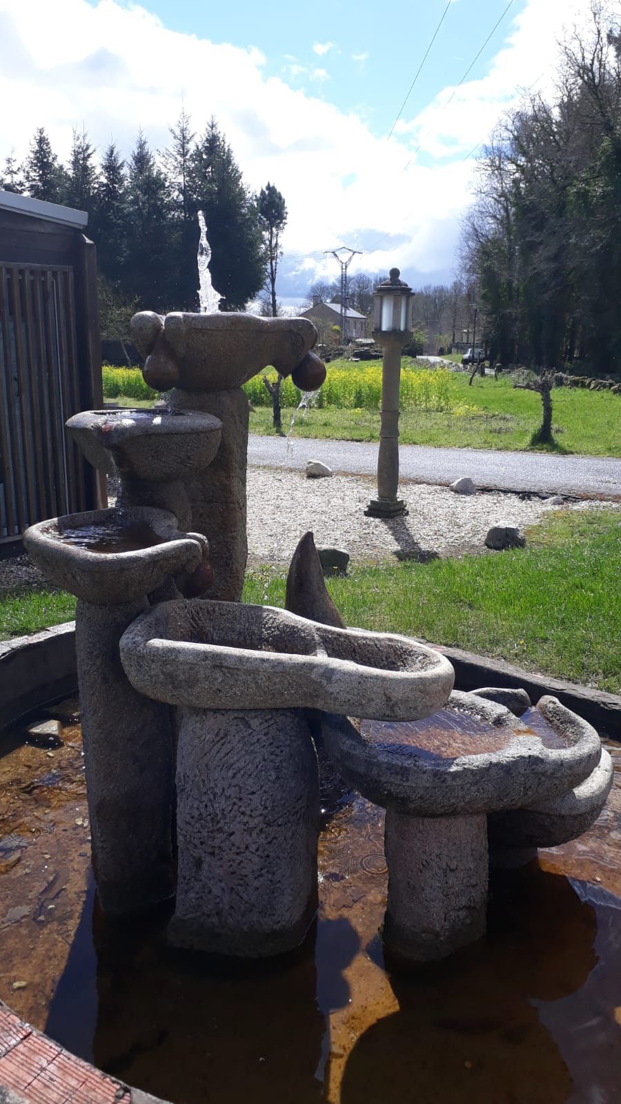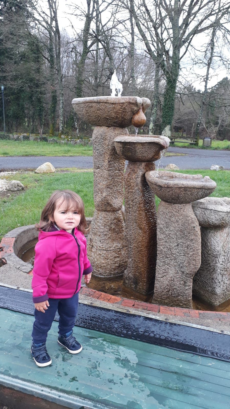 Ce matin, pendant que Fred met de l'ordre dans Pumbaa, on profite de l'eclaircie pour se balader, on rencontre un pêcheur nous montrant sa pêche, on observe les brebis et leurs agneaux, on jette des bâtons dans l'eau, on profite de l'aire de jeux à côté... un moment plaisant avec le soleil qui tente son retour!