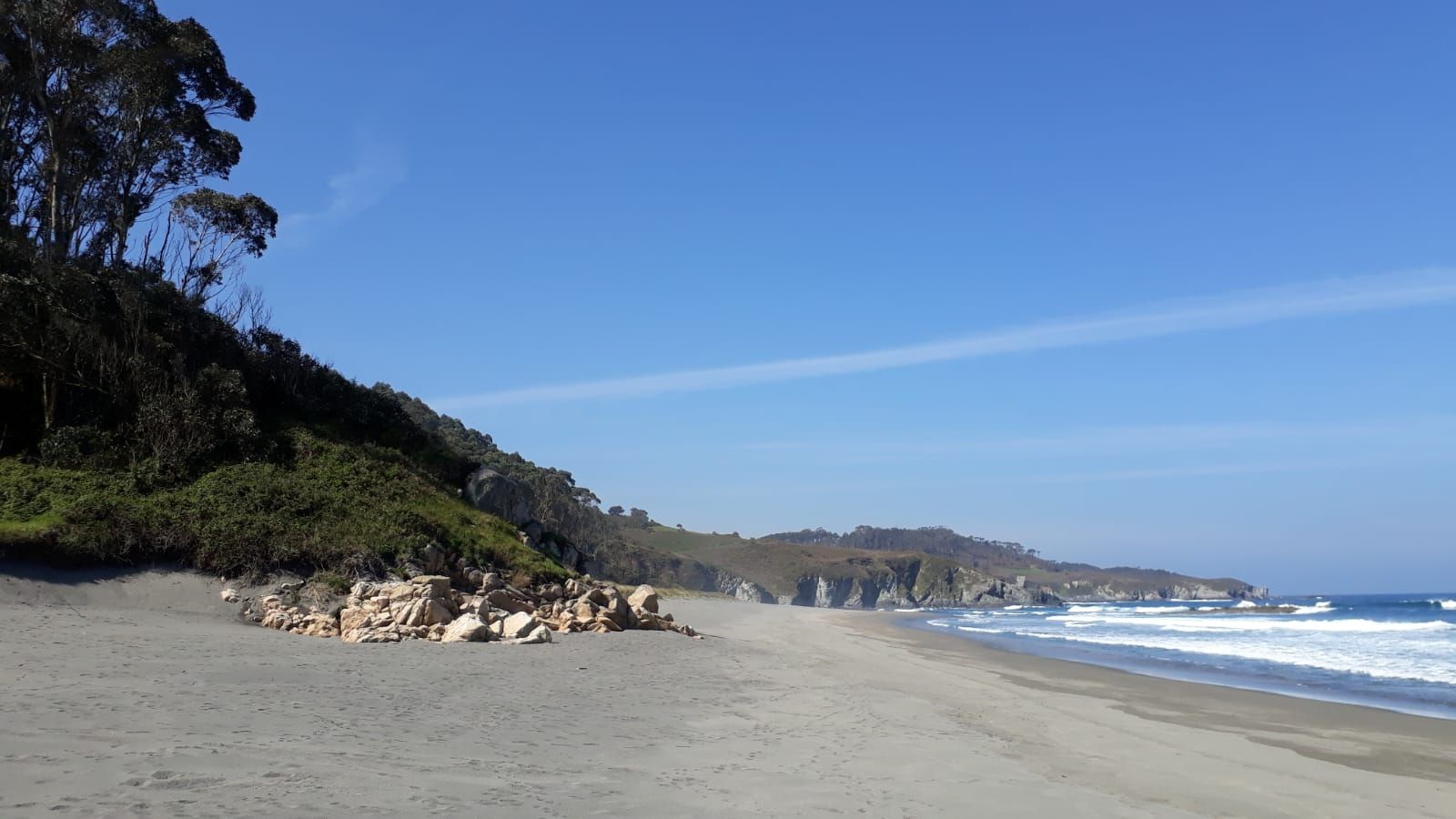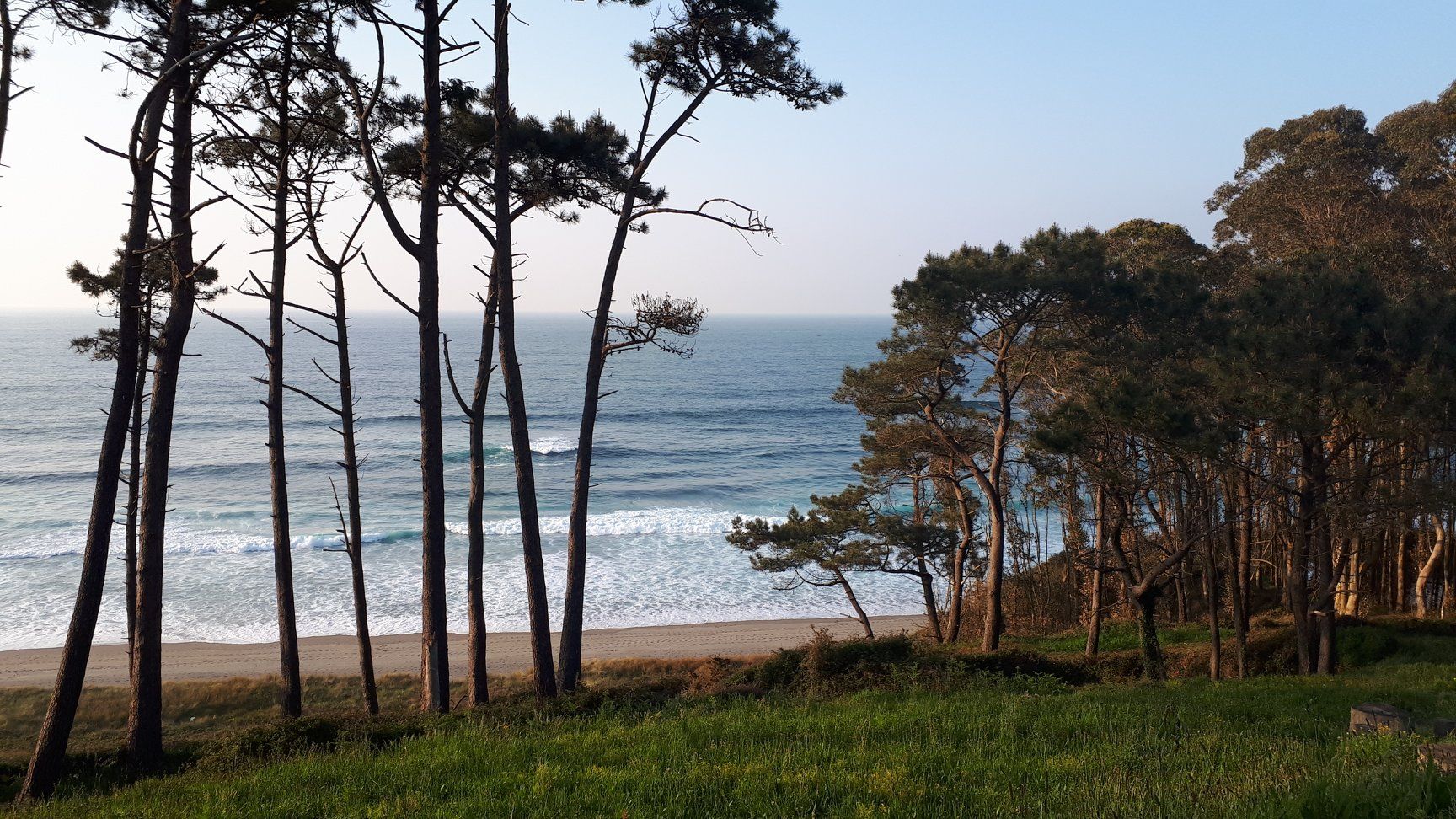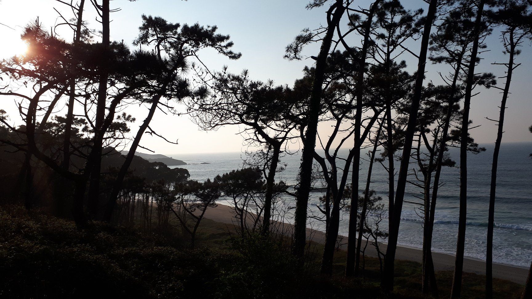 Ce matin, bon moment sur la plage de Frexulfe en contrebas du spot. La rivière calme et douce se jette dans la mer déchaînée, un paradis pour les surfeurs! Le sable est noir et d'immenses eucalyptus surplombent la dune. À quelques mètres de la mer, des maraicages où les oiseaux barbotent. Là encore, harmonie, nature et sérénité.