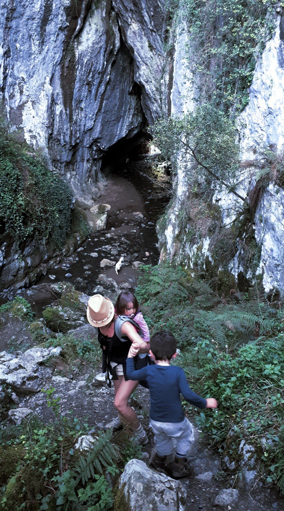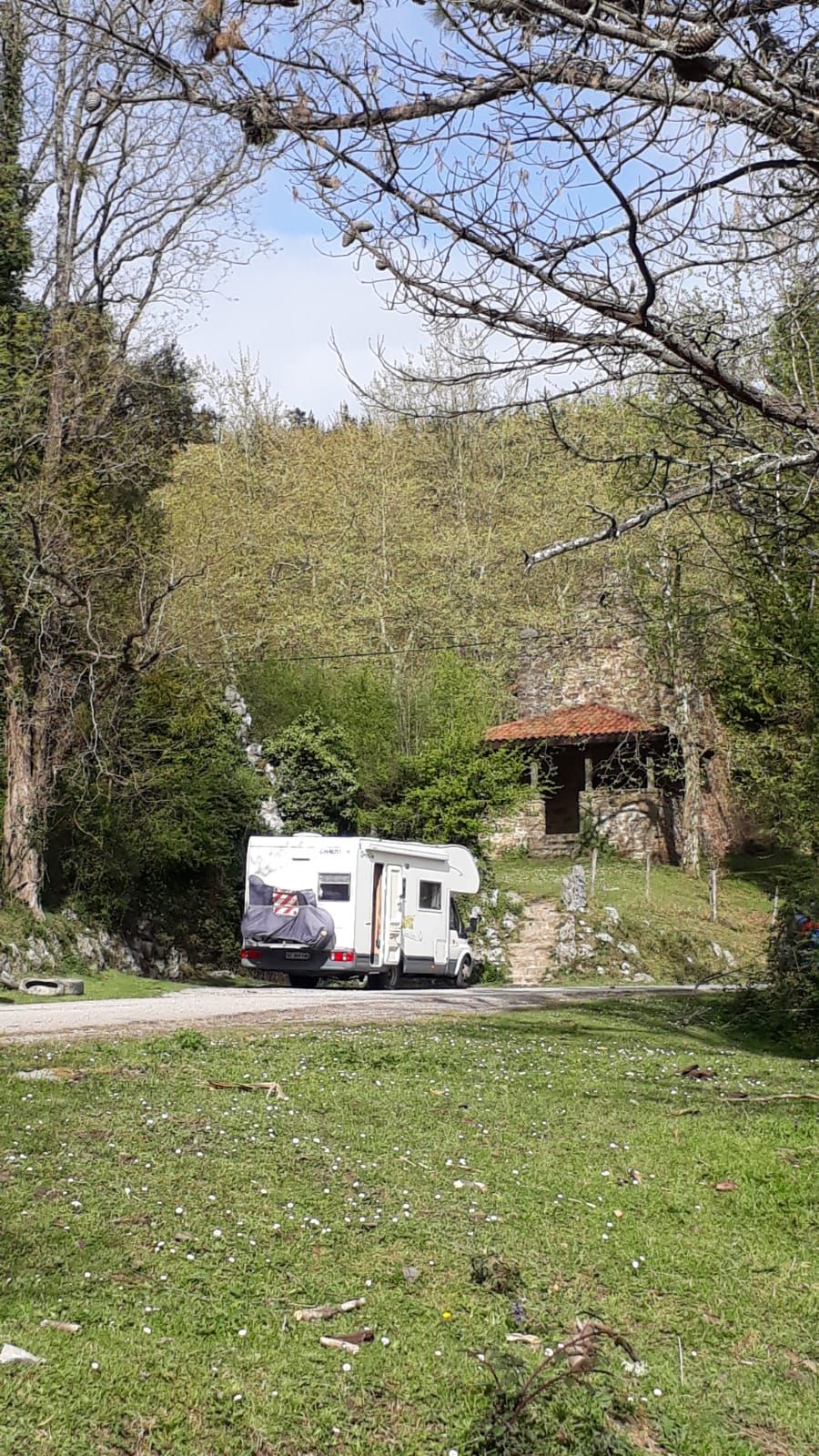 Bon bah, retour au garage demain, le pneu avant droit a une hernie, faut le changer. Après avoir roulé quelques heures, on est contents de trouver un spot en pleine nature pour se reposer. Et cerise sur le gâteau, il nous réserve une belle balade et la découverte de la grotte de Baltzola que nous traversons.