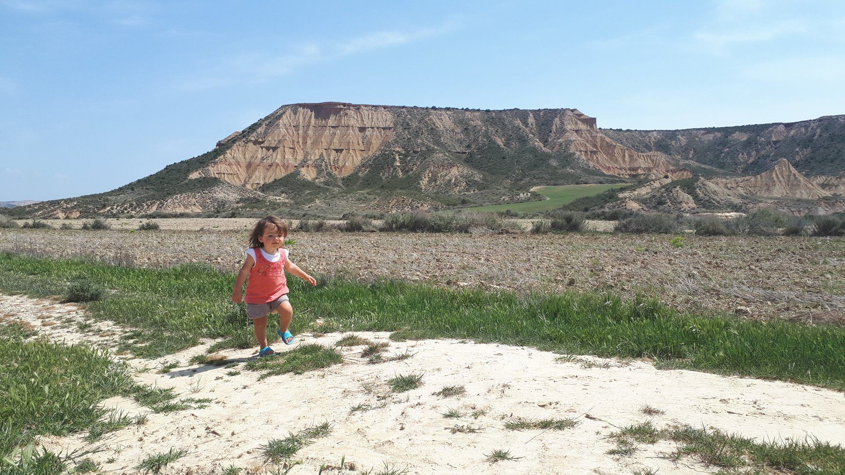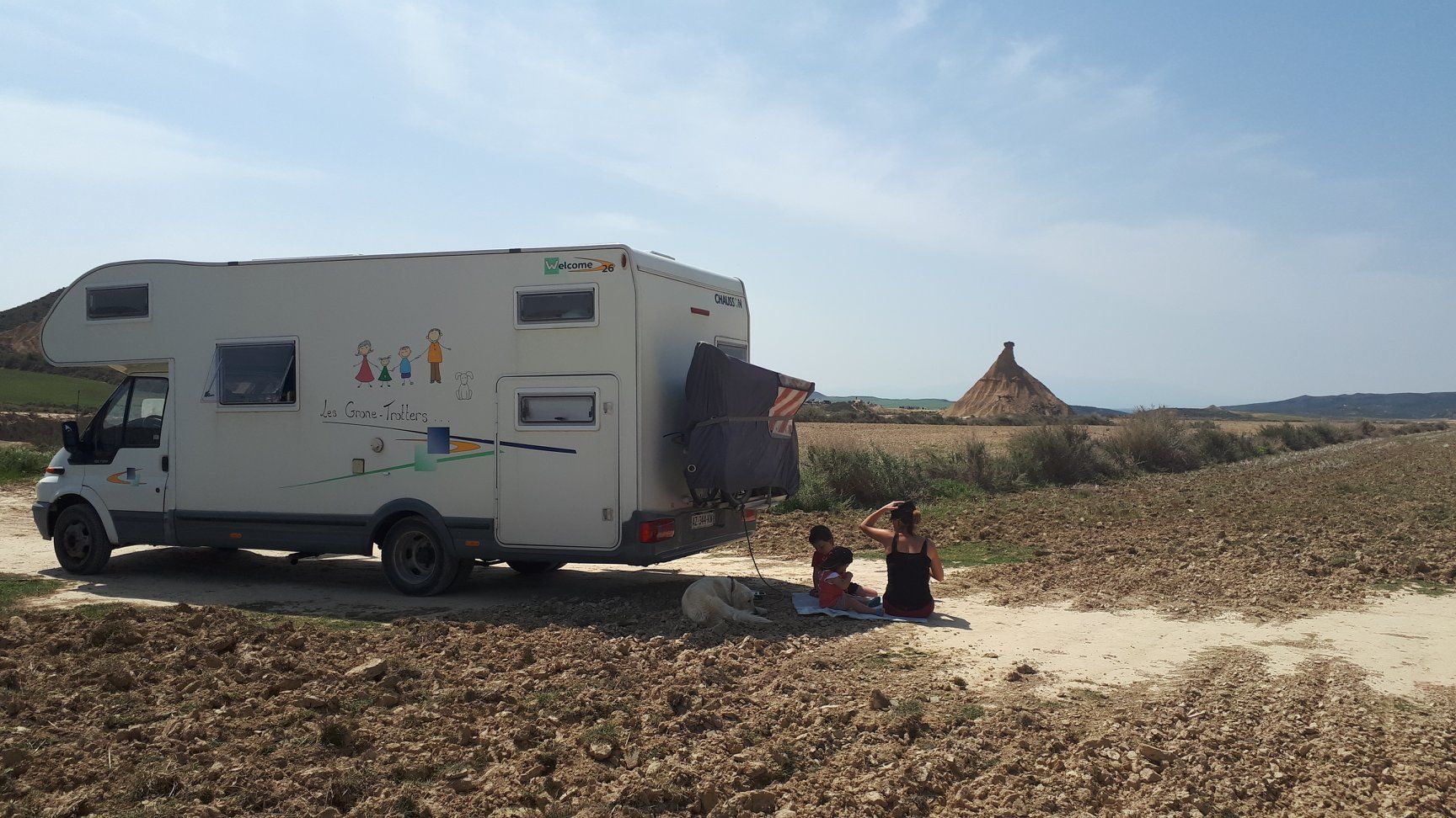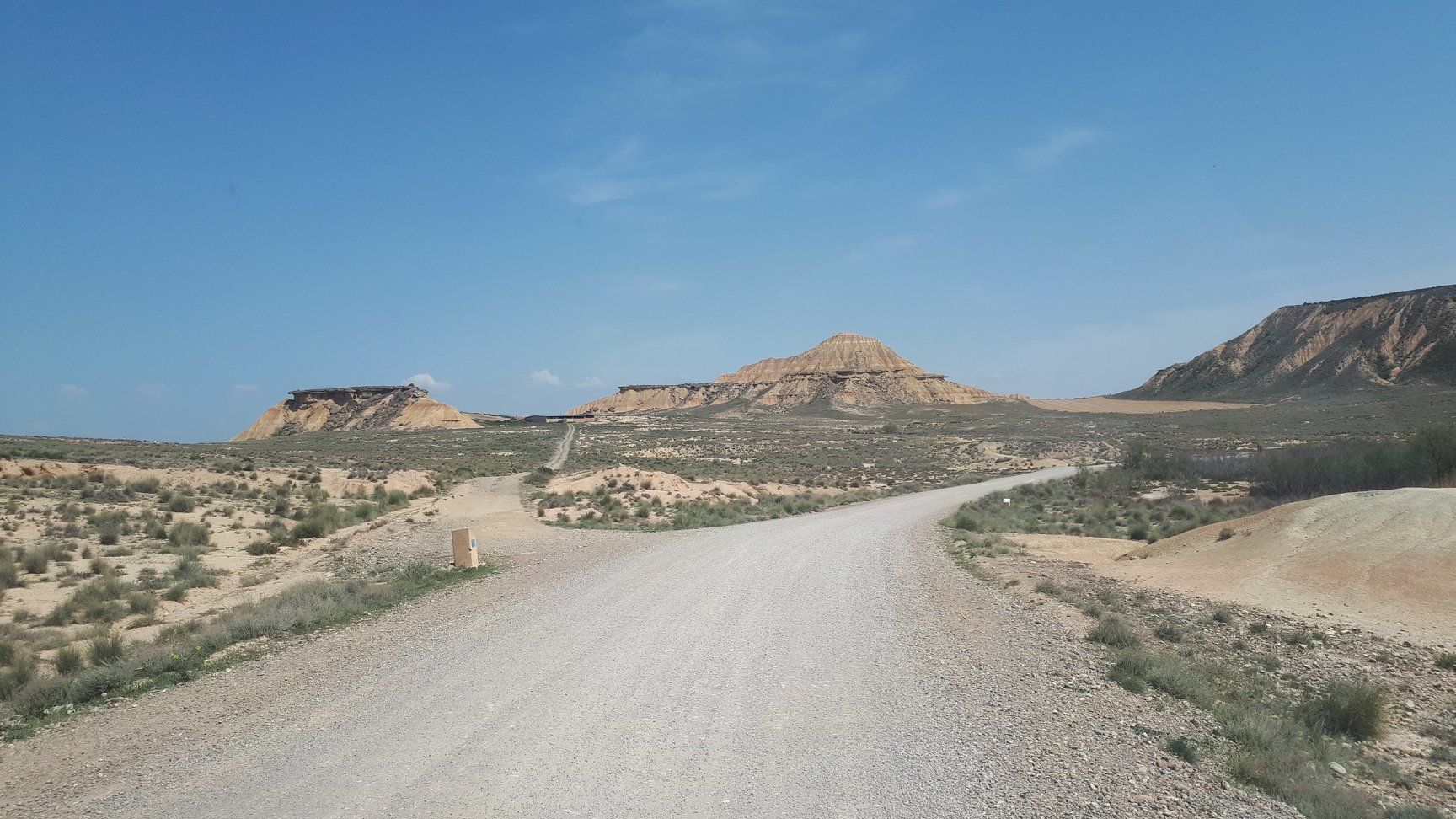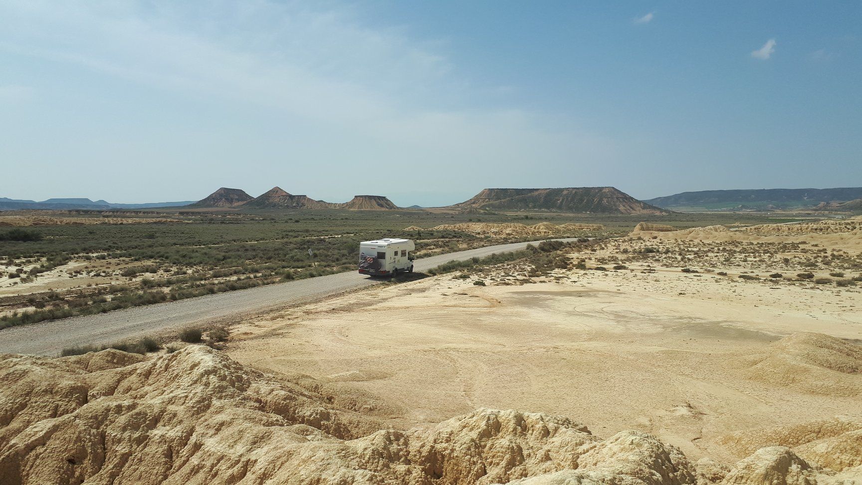 Journée dans le désert de Bardenas Reales, dans la zone de la Bardena Blanca, territoire semi-désertique. C'est un parc naturel qui a reçu le titre de réserve de la biosphère par L'ONU. La zone est balisée pour les engins motorisées, pour les cyclistes et les marcheurs.