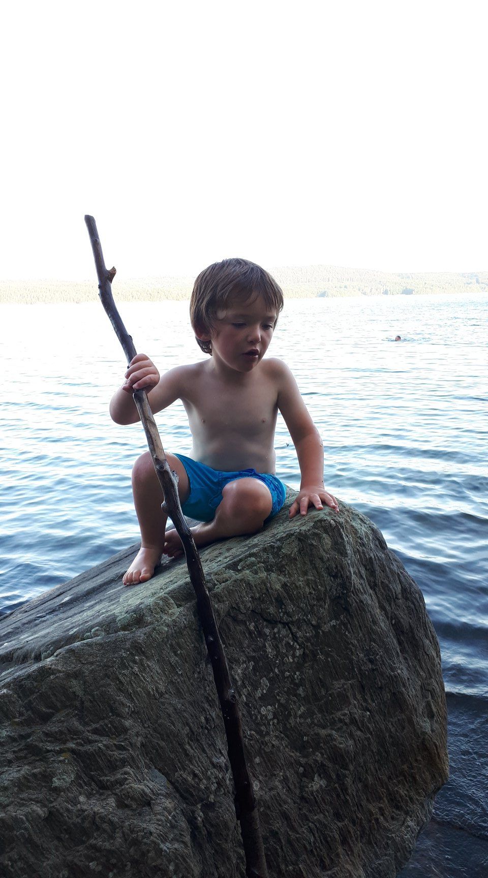 Spot pour la nuit! Hyper méga calme, c'est trop bon! Ce matin, amusement sur une petite plage au bord du lac. Le cadre regorge de plein de petits coins magiques entre bois et lac. Top, on a notre plage privative juste à côté de Pumbaa.