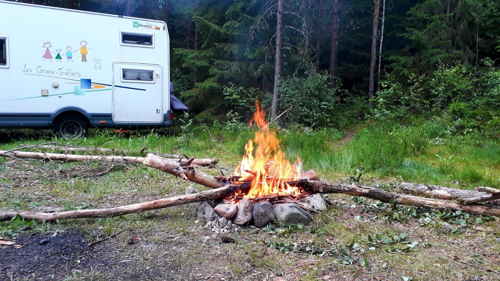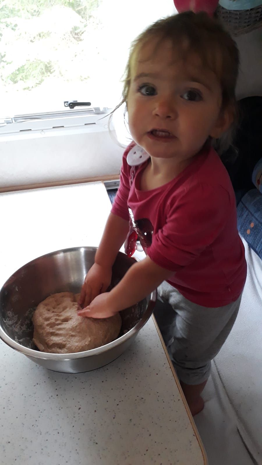 Encore un spot magique! Et la magie opère, Fred y pêche quelques perches! Miam, une bonne fricassée au feu de bois, partagée avec une famille allemande fort sympathique! Avec les enfants, nous réalisons notre premier pain complet avec notre four Omnia! Délicieux!