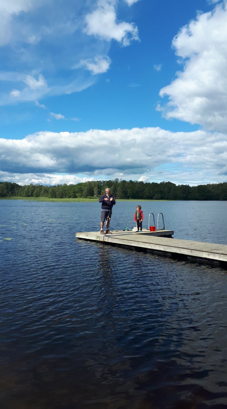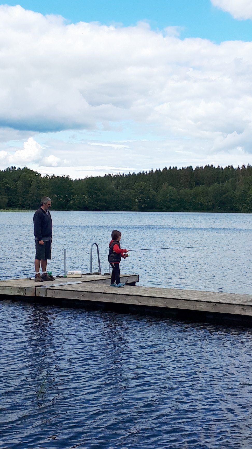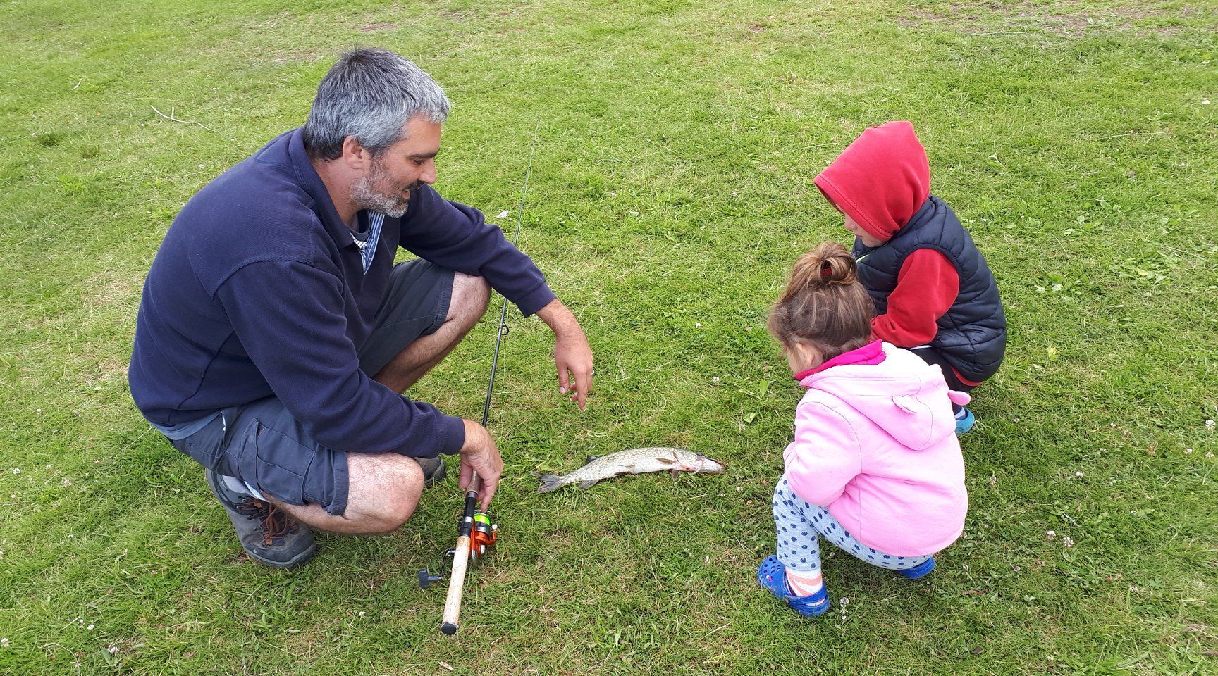 On n'arrête plus Fred notre pêcheur qui pêche son premier brochet, sous le regard émerveillé de Louen. Petite initiation pour notre grand qui apprend l'observation, le calme et la patience! (Enfin, qui essaie😂)