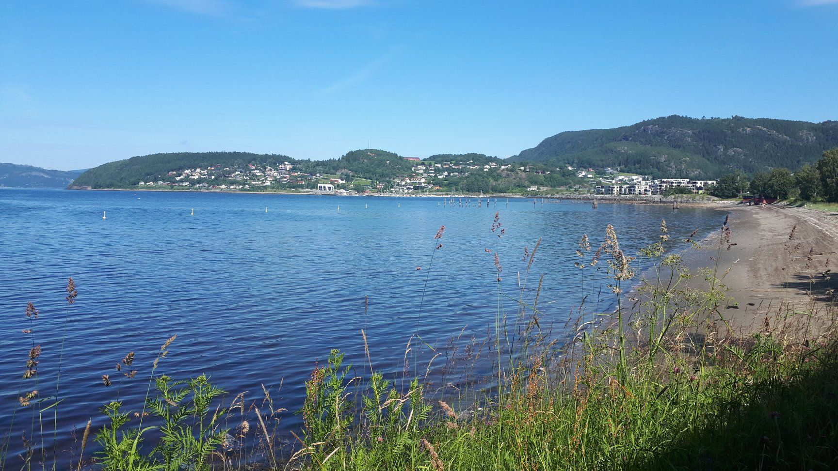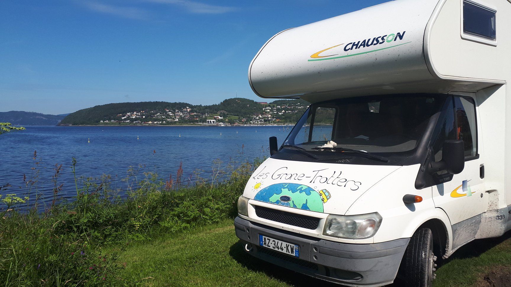 Nous sommes en Norvège! On est passé à la frontière sans problème, sans contrôle, il n'y avait aucune douane! Seulement la nature et des paysages norvégiens vallonnés. Le beau temps nous accompagne, les couleurs sont magnifiques!