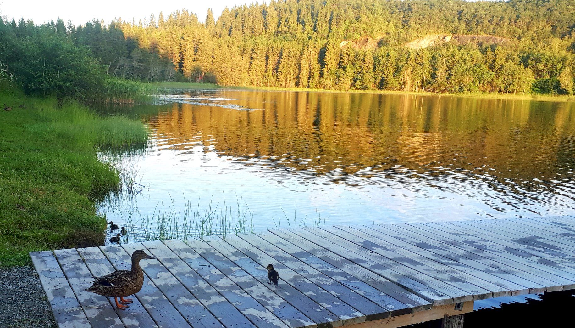 Joli spot pour la nuit parmi des canards peu sauvages. Nous arrivons tard mais profiterons certainement d'un petit bain dans le lac demain, un ponton et un plongeoir s'y prêtent😁