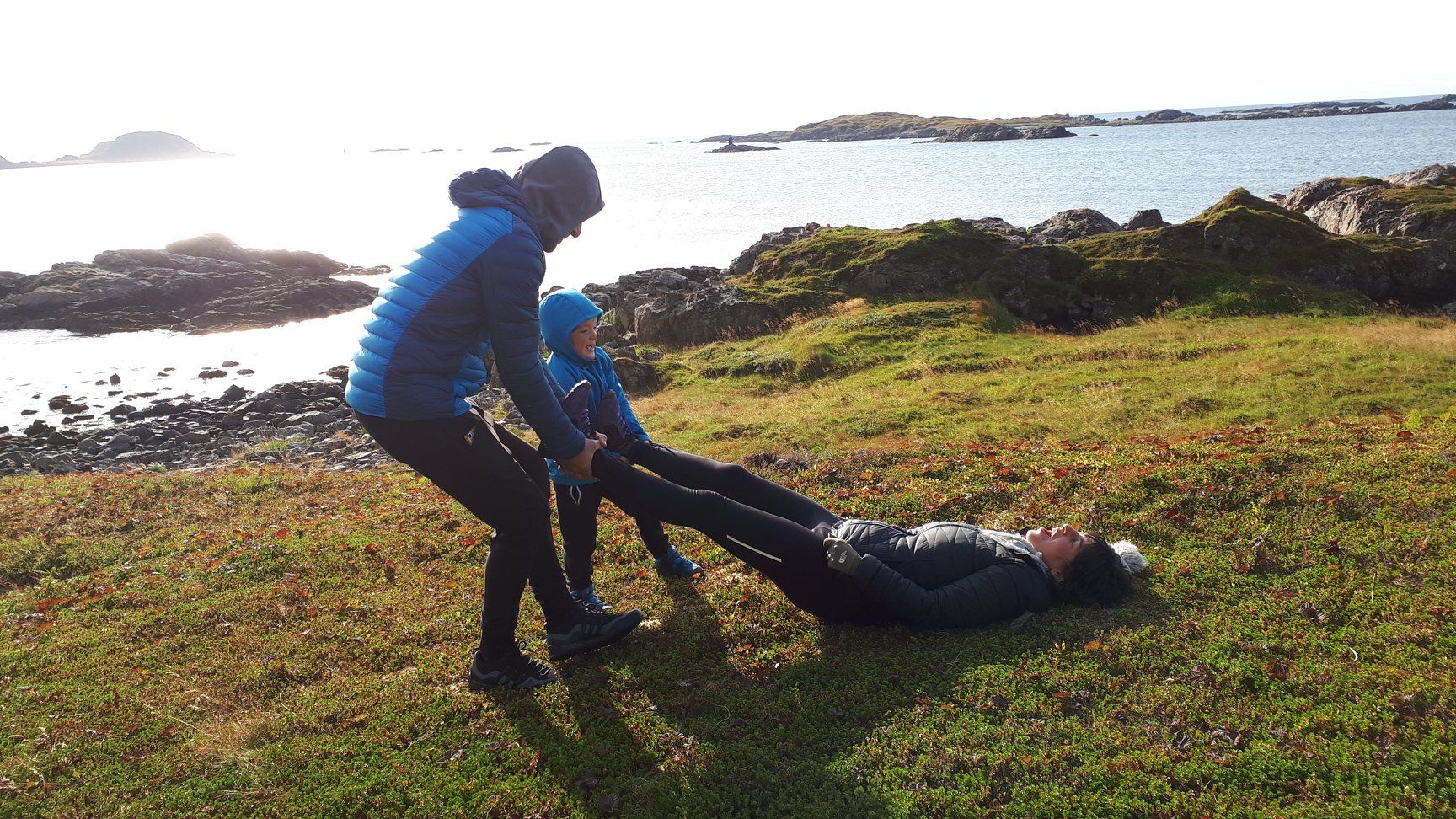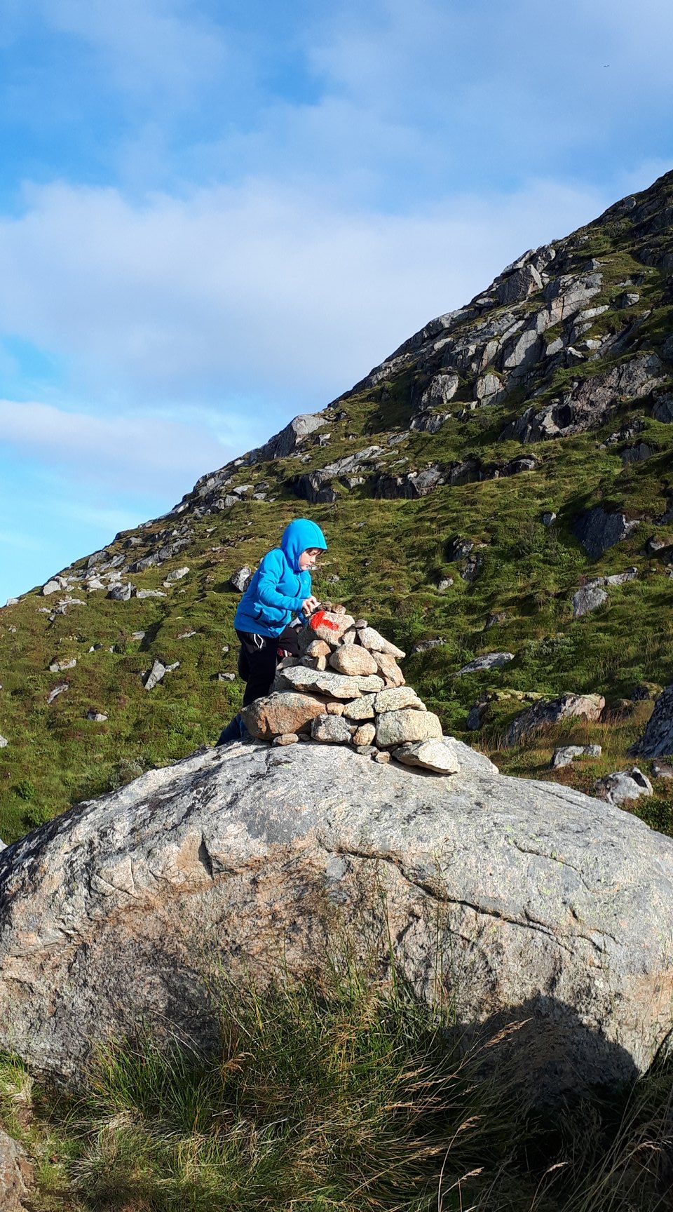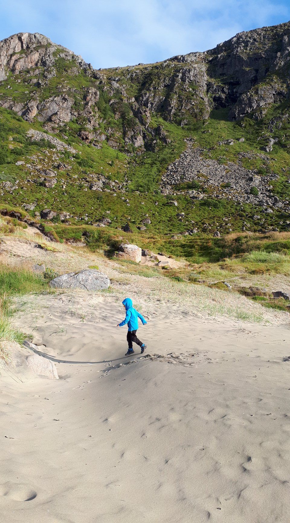 Belle balade avec Vero et Simon sur une partie du sentier de la reine reliant Stø à Nyksund. De parties de cache-cache en trampoline sur les lattes de bois suspendues, le temps passe vite, on s'amuse!!!