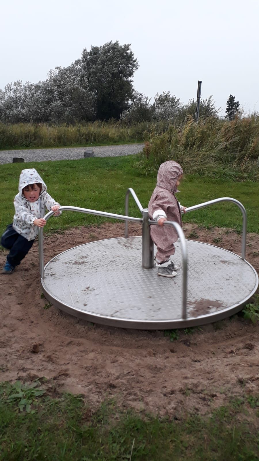 Spot pour la nuit. Il pluviote, ça n'empêche pas les enfants de s'éclater!😉😆