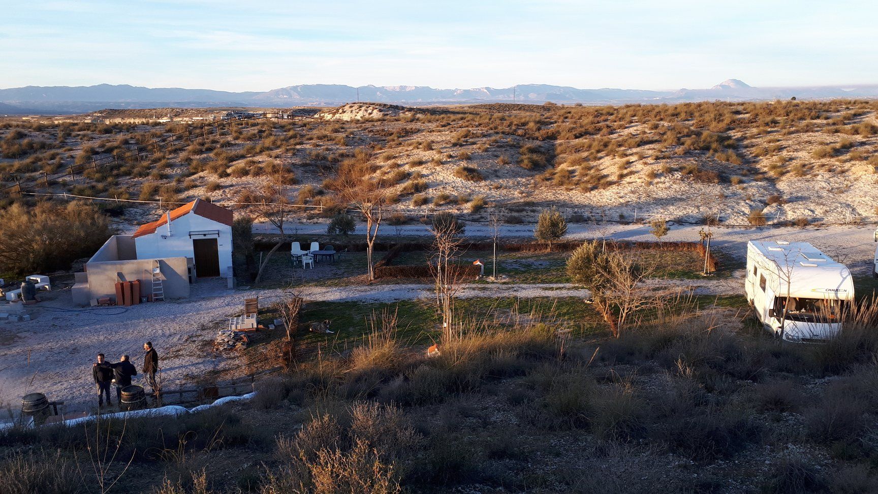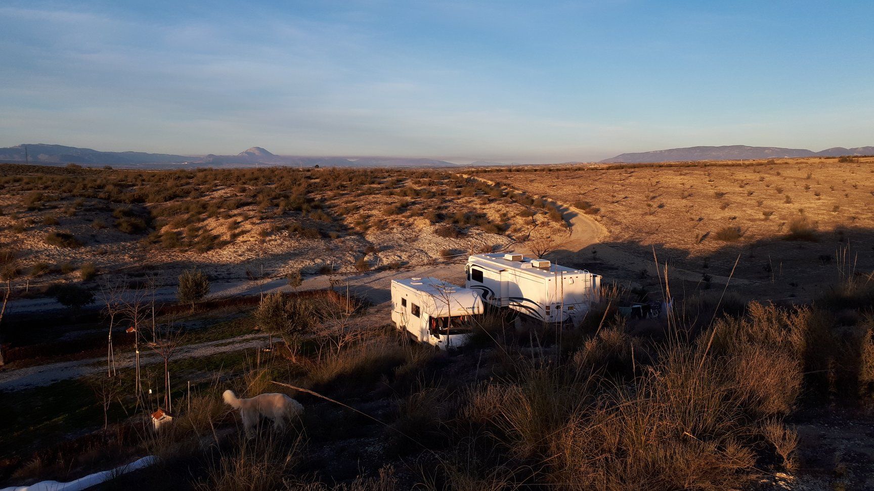 Nous voici arrivés à Baza, Cuevas Andalousia, sur une aire de campement au sein d'une propriété oleicole biologique tenue par des belges.
