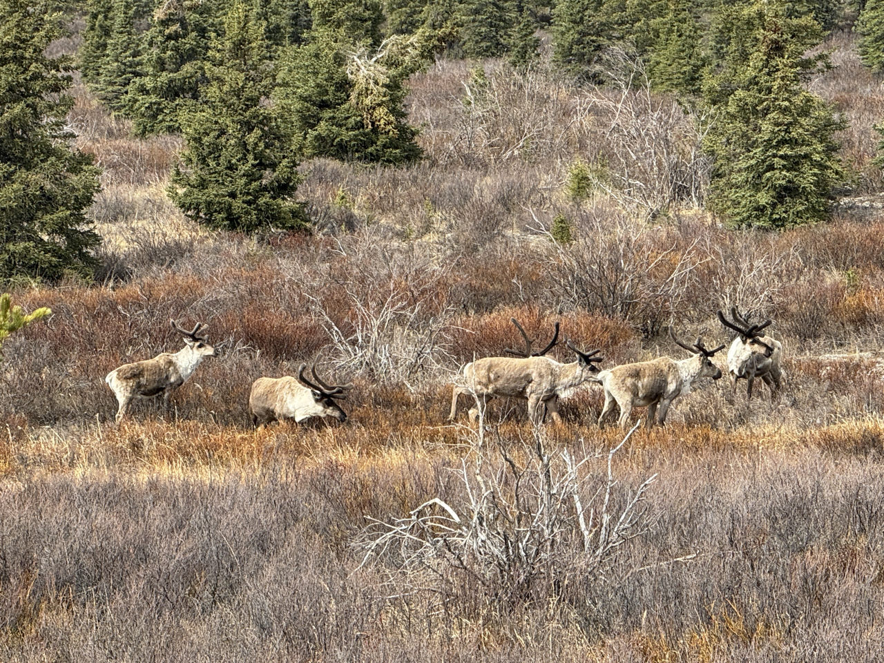 Nach 200 km durch Regen bei 5‘C erreichen wir den Denali-Nationalpark. Der Denali ist mit 6.190 m der höchste Berg der USA. Wir campen im Bärenland und um uns herum huschen die Squirrels herum. Auf einer Tour in den Park hinein sehen wir u.a. einen Fuchs und viele Caribous.